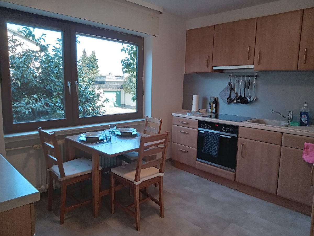 Wohnen 5 Minuten vom Eschborner Gewerbegebiet entfernt, im Grünen, - serviced Apartment Die modern eingerichtete, helle Souterrain-Wohnung befindet sich in Eschborn, nur 5 Minuten von Eschborn Süd und 15 Minuten von Frankfurt Flughafen, Messe oder Stadtmitte entfernt. Perfekt für Messebesucher oder Wochenendheimfahrer! Das ca. 25m2 große Apartment in dem schönen Einfamilienhaus ist kernsaniert und dank der Fußbodenheizung hat es ein sehr angenehmes Klima.