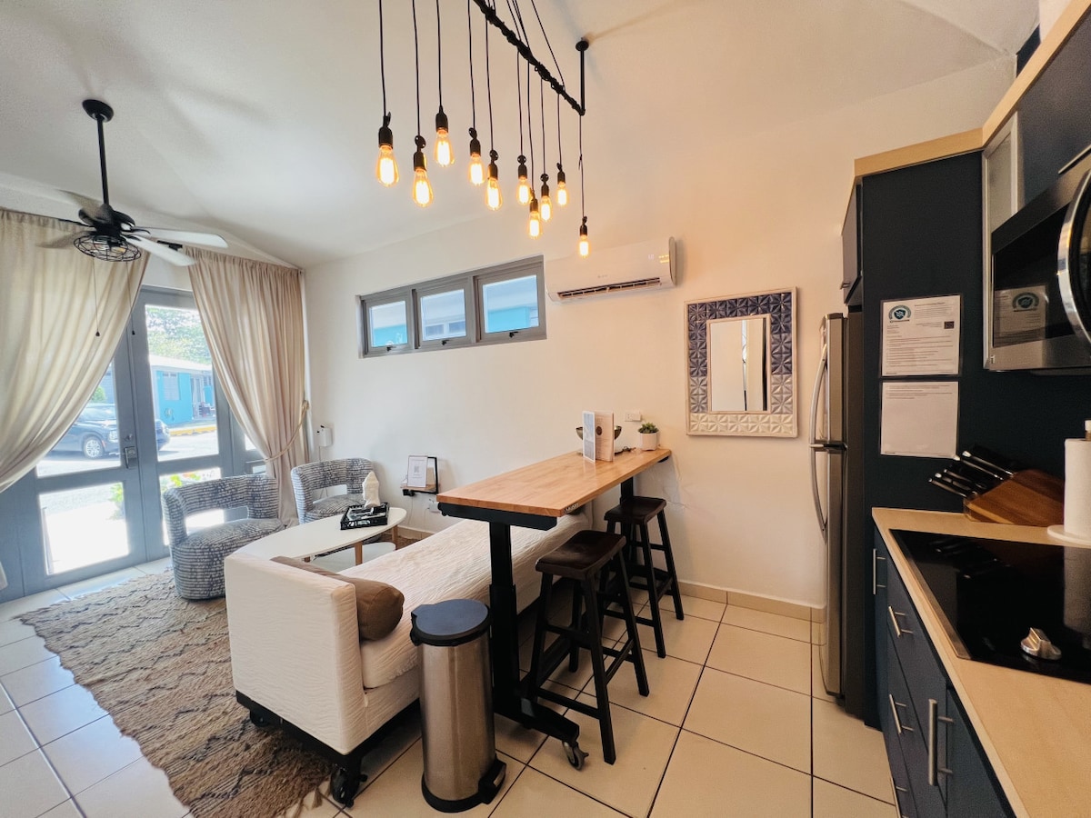 ÜBERNACHTE am Crash Boat Beach! Unsere rustikale, schick gestaltete Casita ermöglicht es Ihnen und Ihrer Gruppe, vollständig in ein einzigartiges Erlebnis am besten und beliebtesten Strand von Puerto Rico einzutauchen. Die Außenterrasse ist nur wenige Schritte vom weißen Sandstrand und dem kristallklaren Wasser entfernt. Genieße unsere weltberühmten PRican-Sonnenuntergänge, morgendliche Spaziergänge am Strand, Paddeln, Jetski, Sonnenbaden, unter anderem unterhaltsame Aktivitäten. Diese Casita ist auch nur eine kurze Autofahrt von einigen der besten Surfspots der Insel entfernt!