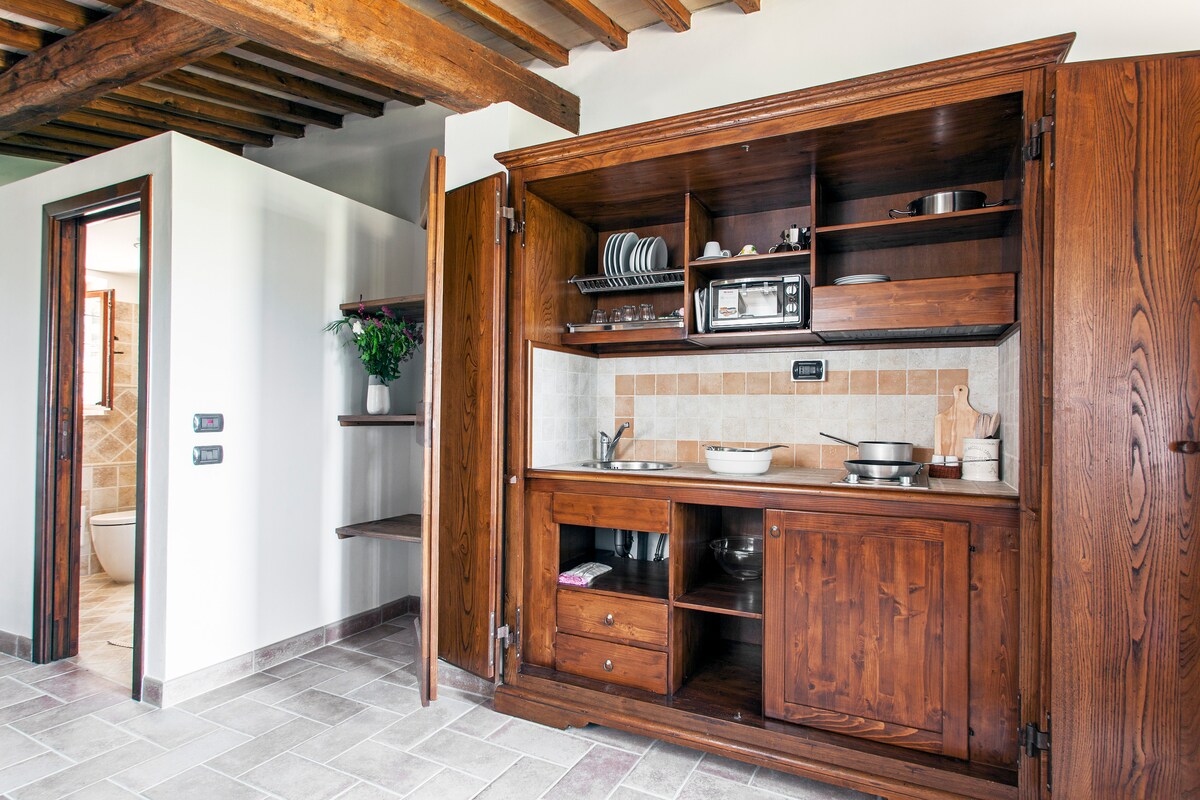 Die Wohnung ist zwei Etagen unter dem Platz, komplett in den Tuffstein gehauen. Mit Blick auf das Tal, ist es vom Straßenlärm isoliert, ruhig, privat und sehr gemütlich. Die Tuffsteinwände verleihen ihr ein antikes Aussehen, um Sie in der Zeit zu transportieren. Sie erreichen sie zu Fuß über eine Fußgängerbrücke, die Sie direkt auf den Platz führt, auf dem sich das Gebäude befindet. Sie ist perfekt für kurze Aufenthalte der völligen Entspannung, aber mit der voll ausgestatteten Küche wird sie optimal genutzt.