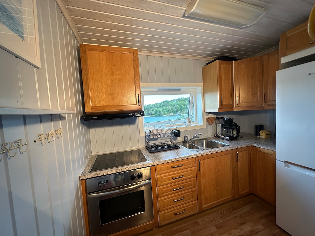 Unsere Hütte bietet eine atemberaubende Lage mit Panoramablick, nur 50 Meter vom Strand und Pier entfernt. Gut ausgestattet - einziehen! Perfekt für Einzelpersonen, Paare sowie Familien. Genieße einfachen Zugang zur Küste von Vestfold mit Schwimmen, Angeln und Paddeln in der Nähe. Erkunde Golf, Wander- und Radwege und charmante Städte wie Stokke, Tønsberg und Sandefjord - alles in Reichweite. In der Nähe des Oslofjord Convention Center.