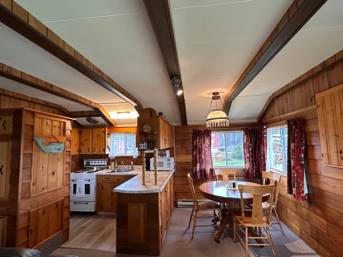 Perfect little getaway to spend time in nature. Completely off-grid. Solar Lights. Two bedrooms, one with double bunks, one with a double bed. Open concept kitchen/living room with wood stove. Propane stovetop and oven. Furnished deck and BBQ. Although there is no plumbing (outhouse), large fresh water jugs are provided for your drinking and washing needs. Bonfire pit. Unwind from the outside world and reconnect with your self or your loved ones and the natural world around you.