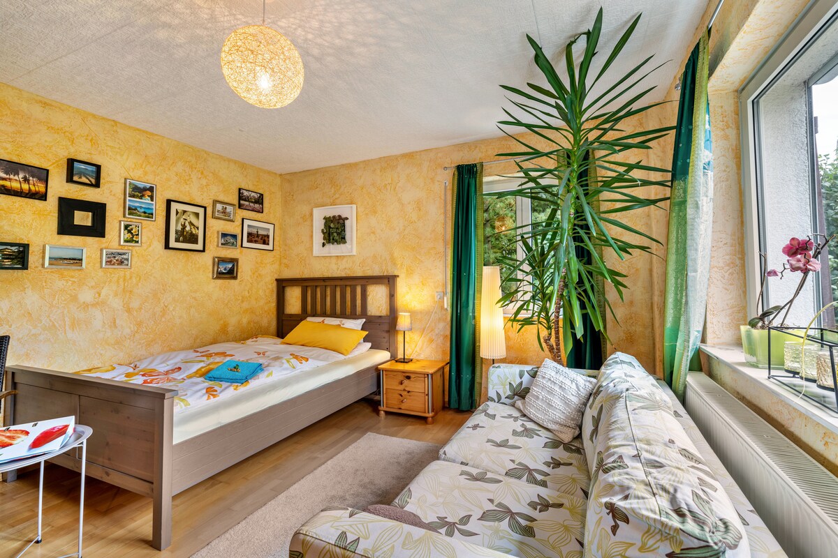 Schönes neu renoviertes Gästezimmer mit eigenem Bad, WC und separatem Eingang. Ideal für 1-2 Pers.Zum Gästezimmer gehört außerdem ein Aufenthaltsraum mit Tisch und Stühlen, sowie ein Sofa. Auf Anfrage kann Kinderreisebett oder Matratze bereitgestellt werden. Die Terrasse kann jederzeit benutzt werden (s. Fotos). Die Waschmaschine und der Trockner können für jeweils 2€ Aufpreis benutzt werden. Zur Ausstattung gehört: WLAN, Kühlschrank, Bettwäsche, Duschtücher Senseo, Wasserkocher, Herdplatte