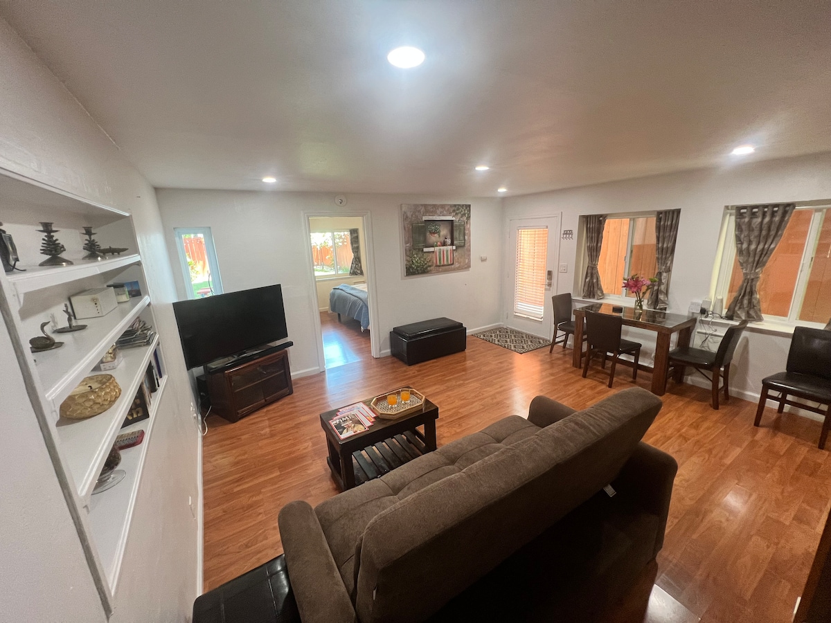 Willkommen in deinem privaten 800 Quadratfuß großen urbanen Rückzugsort, der im März 2017 durchdacht renoviert wurde. Diese stilvolle und komfortable Unterkunft bietet moderne Annehmlichkeiten und eine erstklassige Lage im Herzen der Stadt. Bitte beachte: Die Unterkunft befindet sich an einer belebten Straße und neben einer Ladestation für Elektrofahrzeuge und direkt an einer großen Autobahn. Gäste, die empfindlich auf Lärm reagieren, möchten dies möglicherweise vor der Buchung in Betracht ziehen.