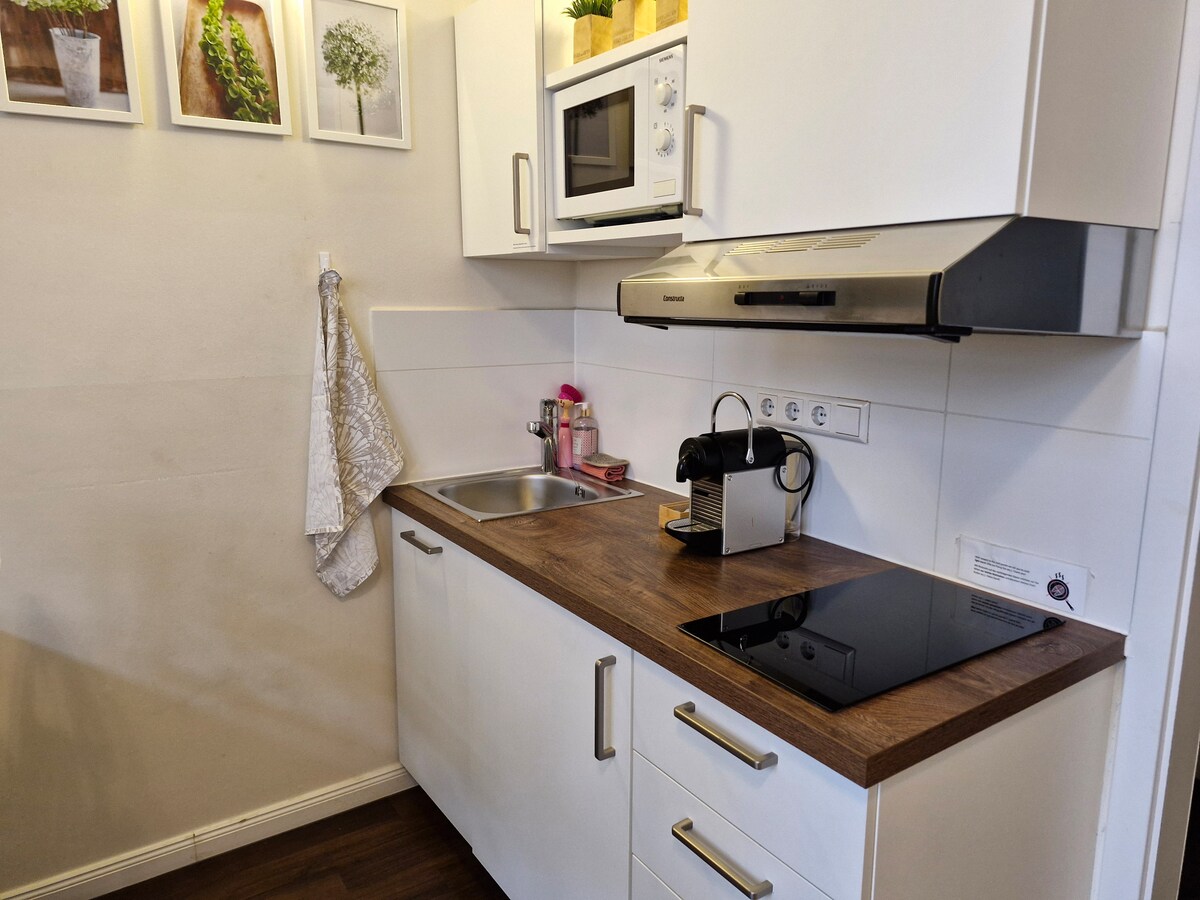 Sonnendurchflutete 36 qm Wohnung mit großem Balkon. Perfekter Anschluss an öffentliche Verkehrsmittel sowohl über S-Bahn, U-Bahn und Busse in alle Richtungen. Kostenloser Parkplatz vor dem Haus. Ladestation über die EnBW in direkter Umgebung (30 Meter, Extrakosten je nach Anbieter). WLAN und Smart-TV mit Telekom Magenta. Komplette Küchenausstattung mit Geschirr, Besteck, Kaffeemaschine, Toaster, Mikrowelle, Wasserkocher, Backofen und Herd. Modernisierter Wohnraum mit kernsaniertem Badezimmer.