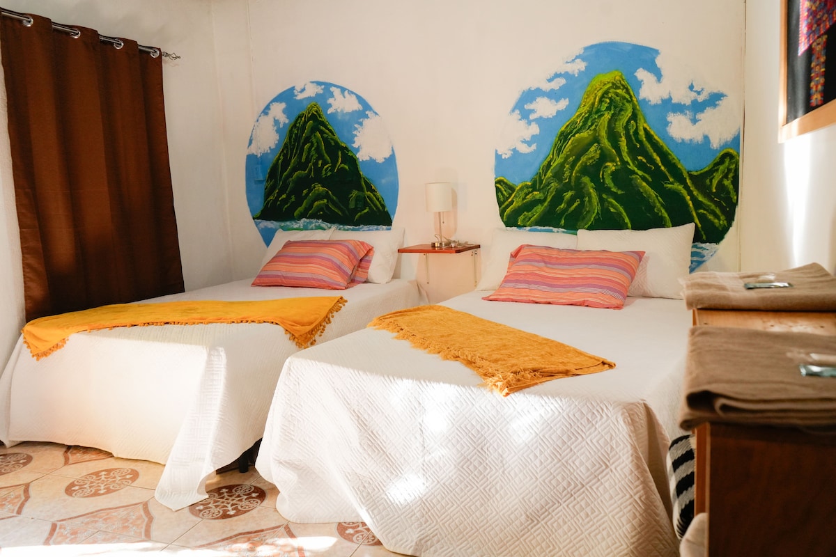 *Wohnung mit 2 privaten Schlafzimmern *Jedes Schlafzimmer verfügt über ein eigenes Badezimmer *Gemeinsame Küche, Terrasse und Lesebereiche *Befindet sich im zweiten Stock eines Einfamilienhauses *Private Balkone und große Fenster *Schöner Blick auf Berge und Hügel * Nur 10 Gehminuten vom Atitlán-See entfernt * Umgeben von der lebendigen Maya-Kultur von San Juan La Laguna *Ruhige, sichere Gegend mit lokalen Geschäften und Kaffeefarmen in der Nähe