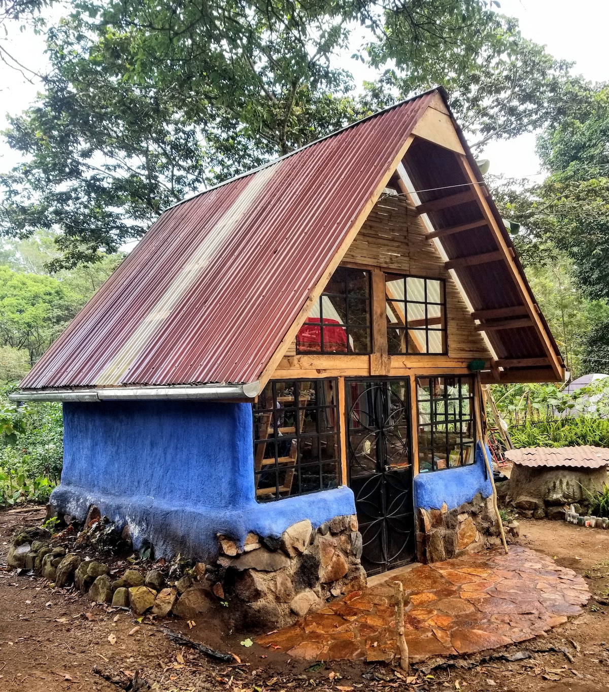 Übernachte in einem einzigartigen Erdwochenhaus im Wolkenwald von Bahia de Santiago. Ein magischer und ruhiger Waldurlaub abseits der Hektik der Stadt, aber nah genug, um einfache Ausflüge für Vorräte zu machen. Das Ferienhaus verfügt über 2 Betten, ein Loft und eine Küche. Enthält eine solare heiße Dusche in einem Gewächshaus und eine Komposttoilette mit Zugang zu allen Gärten und Gemeinschaftsbereichen. Casa Bela ist ein 2-stöckiges Cob-Haus mit Flaschenmosiakwänden und handgemachtem Steinboden. Enthält Bettwäsche und Decken.