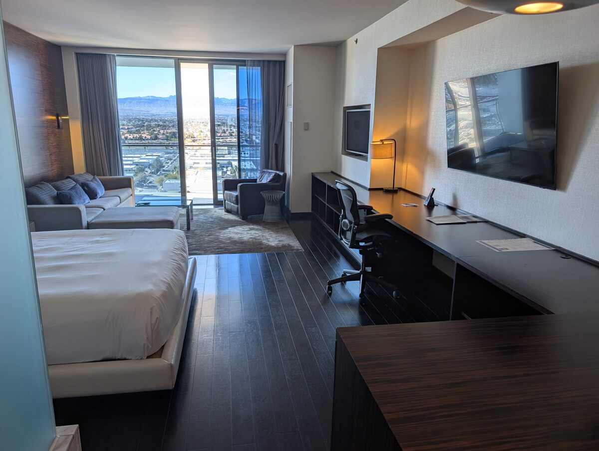 Im PALMS PLACE Tower gelegen, der mit dem Palms Hotel Casino verbunden ist. KEINE RESORTGEBÜHREN Tolle Lage, Boutique-Studio-Suite mit Rundumservice. Tolle Ausstattung und kostenlose Parkplätze. Ideal für Wochenendausflüge mit deinem Partner oder für Geschäftsreisende, die in der Nähe des Strip wohnen möchten. Du musst mindestens 21 Jahre alt sein und einen gültigen Ausweis vorlegen, um einchecken zu können.