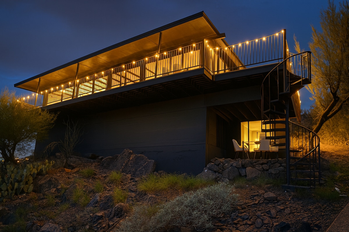Betritt die Terrasse für eine Nacht der Sternenbeobachtung in diesem einzigartigen geodätischen Haus in der Wüste mit freiliegendem Stein, Balken und rustikaler Wärme. Mache eine Wanderung im benachbarten Bergreservat, zünde dann den Grill im Hof an und beobachte den Sonnenuntergang. Unser Anwesen besteht aus zwei Kuppeln und einem Turm, und dieses Inserat ist für eine der Kuppeln. Sie ist komplett unabhängig und privat. Wir haben ein wunderbares, einzigartiges und ungewöhnliches Anwesen, das aus zwei geodätischen Kuppeln und einem Turm besteht. Dieses Inserat ist nur für die Nordkuppel. Überprüfe meine anderen Inserate auf Verfügbarkeit der anderen Unterkünfte. Die Gäste haben Zugang zu einer fabelhaften Aussicht, Küchenzeile (Spüle, Mikrowelle, Minikühlschrank), Schlafzimmer und Wohnzimmer! Gemeinsame Waschmaschine/Trockner und Aussichtsplattform. Aufgrund der ungewöhnlichen Lage haben wir Überwachungskameras installiert. Es gibt eine Dachkamera, die du unter http://www.patrickharvey.com/domes sehen kannst. Die Aussichtsplattform ist an ein anderes Schlafzimmer angeschlossen und ist ein gemeinsam genutzter Raum, also sei bitte achtsam, wenn du sie benutzt. Es gibt keine Treppen außer zur Aussichtsplattform. Die Einfahrt zu dieser Unterkunft ist sehr steil! Der Hinterhof ist ein Bergreservat und es gibt Wildtiere, die du in der Wüste erwarten würdest, darunter Wachteln, Rennläufer, Kaninchen usw. Zu den Annehmlichkeiten gehören eine Waschmaschine/ein Trockner, ein Grill und die Aussicht! Das Badezimmer ist dein privates Badezimmer und verfügt über einen Föhn. Wir wohnen nicht in dieser Unterkunft, besuchen sie aber oft. Wir sind da, um dich einzuchecken und dir eine Führung durch die Unterkunft zu geben. Das Sunnyslope-Gebiet in der Nähe der Ocotillo Hills beherbergt Luxusimmobilien und viele Restaurants in der Nähe. Der Hinterhof ist ein Bergreservat und es gibt genügend Wüstenwildtiere zu beobachten, darunter Wachteln, Rennkuckucke und Kaninchen.