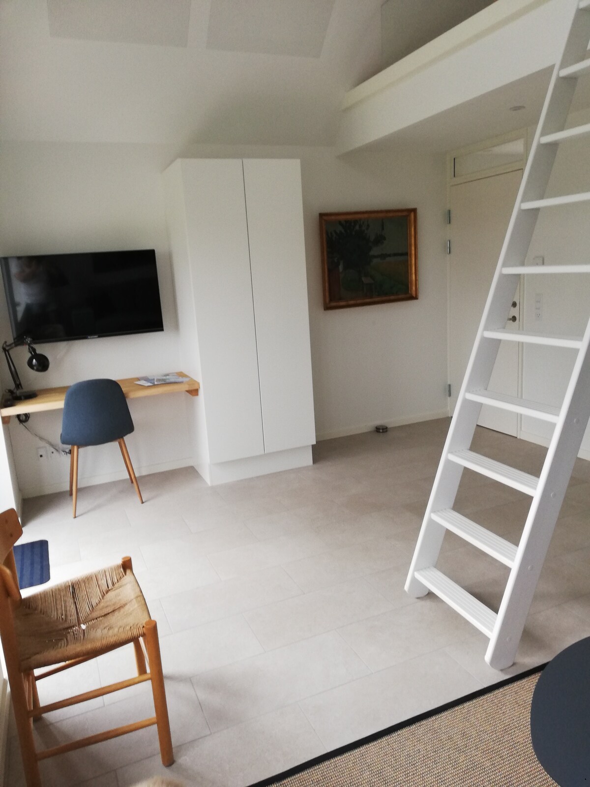 40 m2 lys studiolejlighed på 1. sal. Indeholder sove,- spise og opholdsafdeling. Bad med bruseniche. Køkken med opvaskemaskine. Adgang til stor have med opholdspladser og grillfaciliteter. Gratis parkering. Cykelparkering under tag. Annahus er stråtækket, hvidkalket og romantisk idyl for voksne. Kig til vand. I weekends, helligdage og højsæson mulighed for tilkøb af morgenmad i den store lyse spisestue. Ligger midt i naturen, tæt på skov, strand og Øhavsstien. Check hjemmesiden: annahus.dk.
