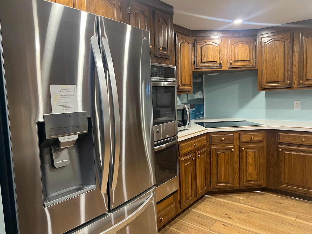 Genieße deinen Aufenthalt in einem komplett renovierten, historischen Schulhaus mit einem Zimmer weniger als zwei Meilen vom Ricketts Glen State Park entfernt. Im Obergeschoss befinden sich zwei private Schlafzimmer, eines mit einem Kingsize-Bett und eines mit einem Queensize-Bett. Unten befindet sich ein offener Raum mit einer voll ausgestatteten Küche, einem Queensize-Murphy-Bett, einem Wohnbereich, einem kompletten Badezimmer, einem Schmutzraum und einer Tafel.