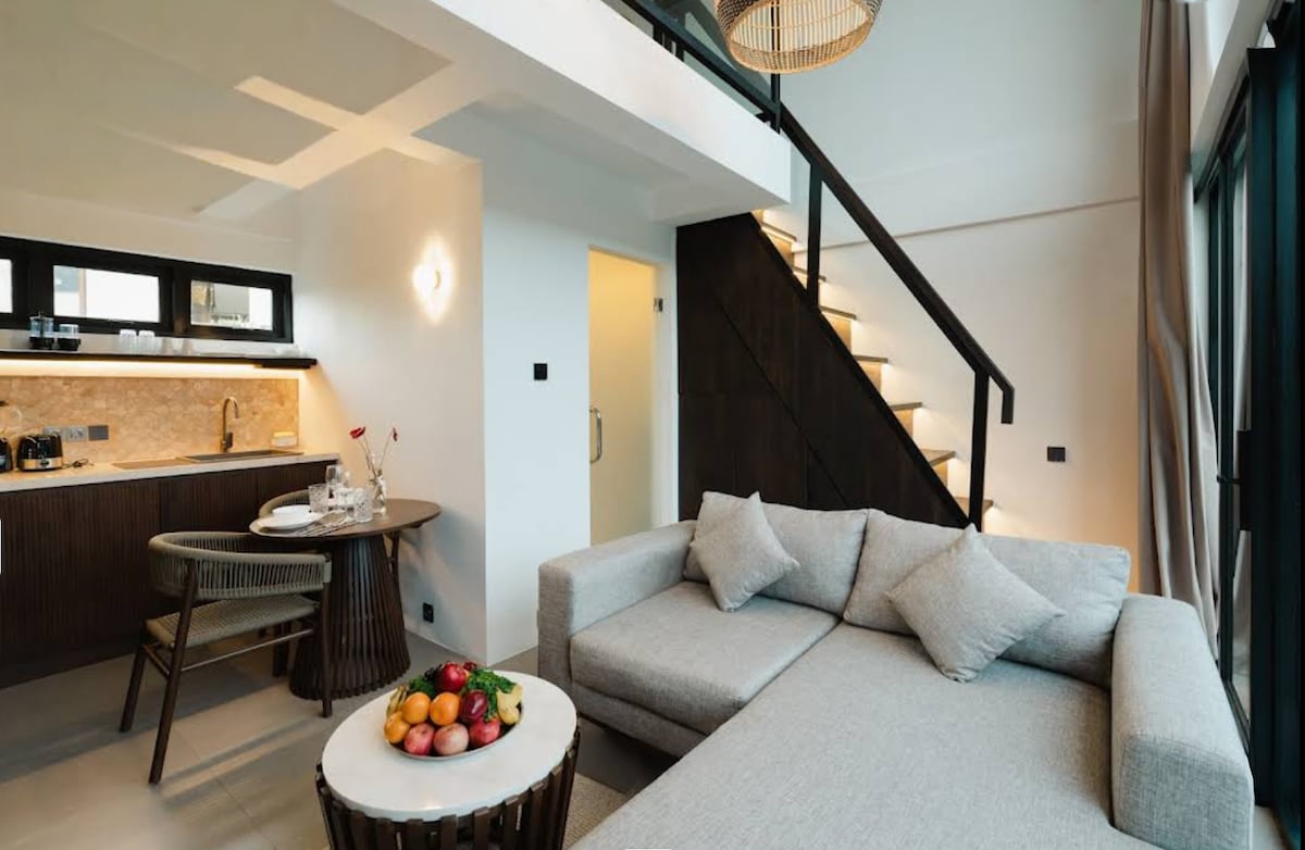 Enjoy a brand-new 43 m² Serenity Twin Suite surrounded by lush rice fields in peaceful Babakan Canggu. This stylish unit offers dual views front and back, a private kitchen with dual-door fridge and full cooking set, large smart TV, and a spacious work desk (80×160 cm). Nearly soundproof with double sliding doors, ultra-fast fiber Wi-Fi up to 500 Mbps (dual providers), daily cleaning, pool, café, co-working space, spa, yoga area, lift, and electric generator — next to Bali Padel Academy