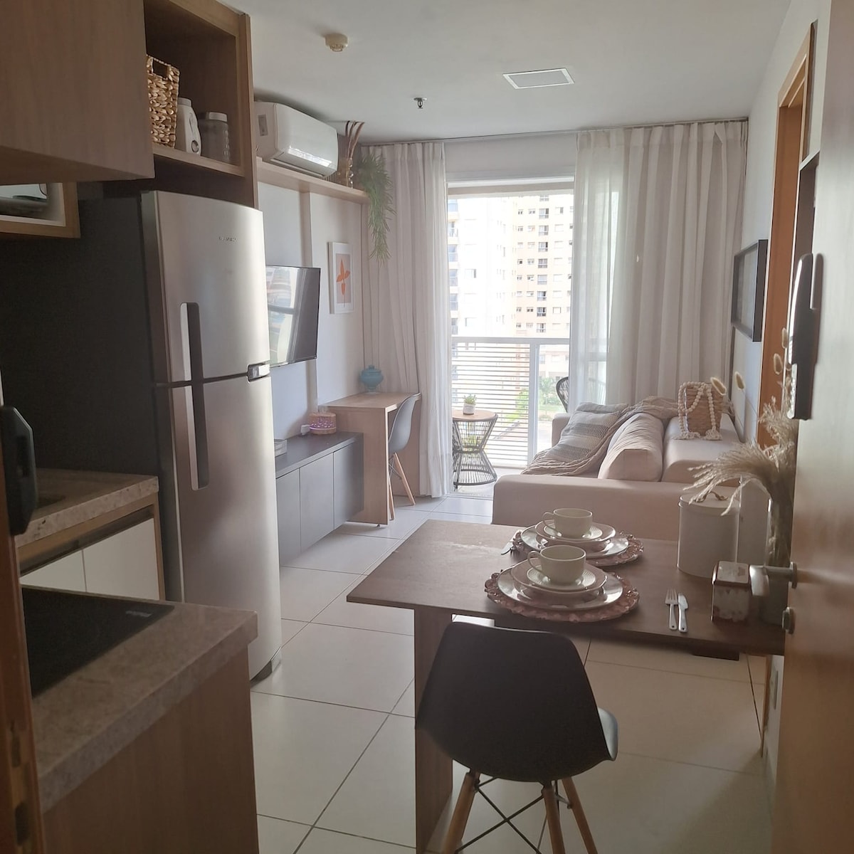 Ein anspruchsvolles, gemütliches Studio mit persönlicher Dekoration und Balkon auf 45 m². Alle Dinge für Ihren Aufenthalt. Klimaanlage, Smart-TV, WLAN, Geschirrspüler, Waschmaschine, Trockner, Weinkühlschrank, Mikrowelle. 24-Stunden-Rezeption, Wäscherei und ein überdachter Parkplatz. Außerhalb des Gebäudes Bäckerei für das Frühstück, Apotheke, ein Bistro, Fitnessraum. Markt in der Nähe von 200 m und andere gastronomische Optionen. Noroeste ist ein gehobenes Viertel in Brasília. Es ist 6 km vom Kongress entfernt. 23 km vom Flughafen entfernt.