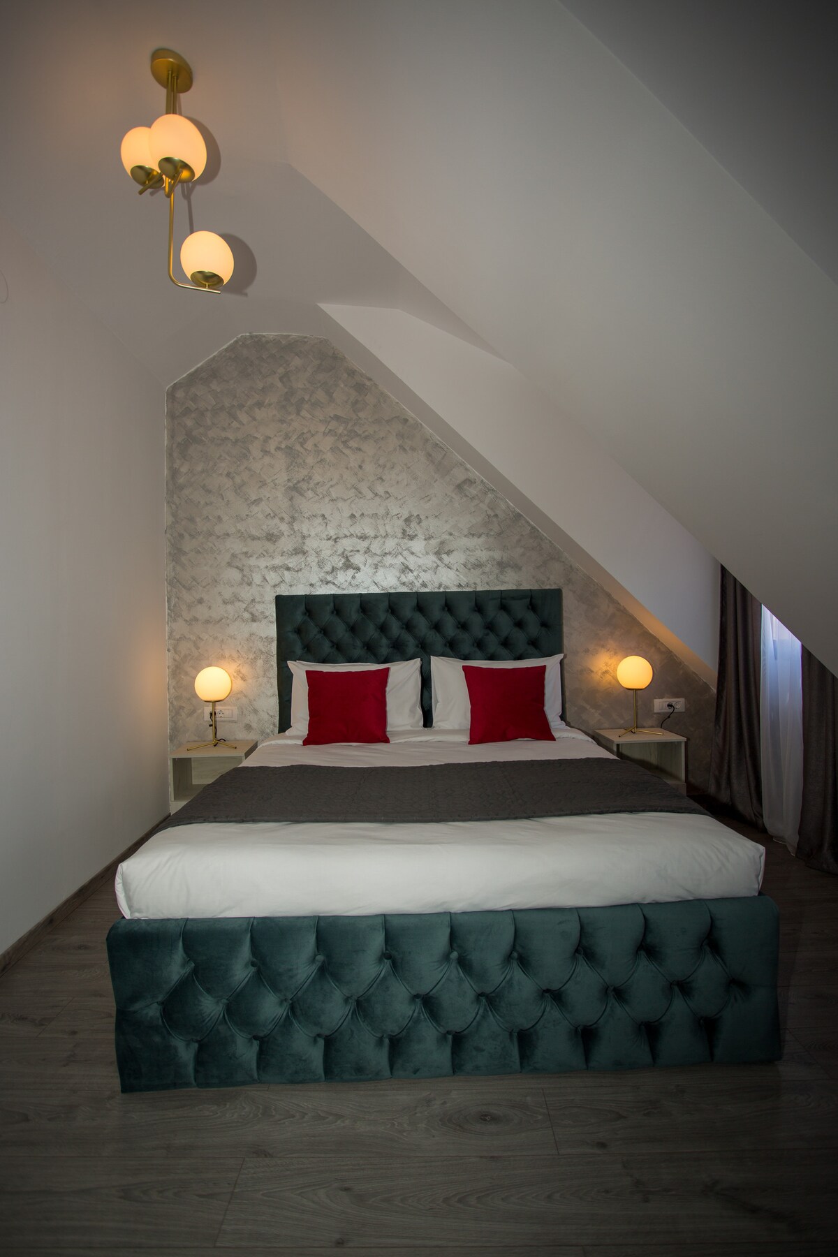 Erlebe den Charme von Brasov in unserem eleganten Loft-Zimmer im 1910 Boutique Hotel. Dieses stilvolle Refugium verbindet modernen Komfort nahtlos mit historischem Charakter und bietet einen atemberaubenden Blick auf die ikonische Schwarze Kirche und die Dächer der Altstadt. Das Loft ist perfekt für einen romantischen Kurzurlaub oder einen ruhigen Rückzugsort und bietet gemütlichen Luxus, natürliches Licht und eine unvergessliche Perspektive auf die zeitlose Schönheit der Stadt.