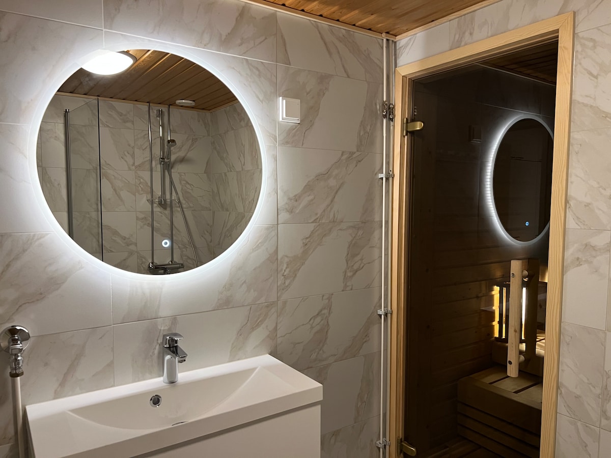 Erleben Sie ein einfaches Leben in der Nähe des Stadtzentrums. Parken Sie kostenlos und laden Sie Ihr Auto günstig auf. Erleben Sie eine erfrischende Verbindung zur Natur, z. B. zu Mountainbike-Strecken, direkt von Ihrem Hinterhof aus. Beginnen Sie Ihren Morgen mit einem Spaziergang in der Natur, entspannen Sie sich in sanften Saunagängen und genießen Sie Erfrischungen auf der Sonnenterrasse. Bereiten Sie Ihre Mahlzeiten in der stilvollen Küche zu, speisen Sie auf Ihrer eigenen überdachten Terrasse und genießen Sie einen entspannten Abend im Wohnzimmer mit Netflix oder im Stadtzentrum mit Kultur- und Unterhaltungsangeboten. Eisbademöglichkeit gegen einen Aufpreis von 25 Euro (5.8.2024–>).