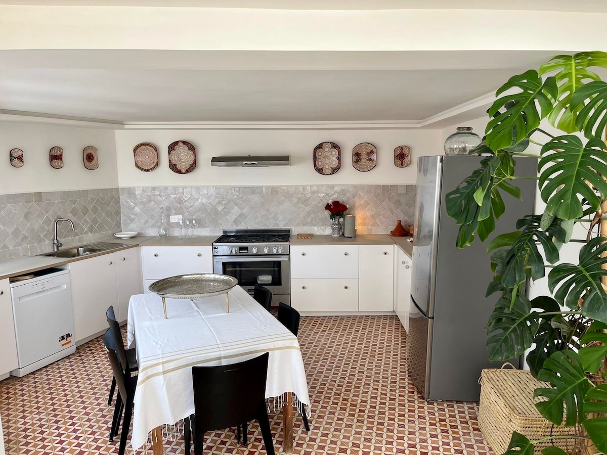 Unser Familien-Riad befindet sich im Herzen der Medina von Tanger, in der Nähe des Strandes, touristischer Aktivitäten, Museen, Souks. Alles kann zu Fuß erledigt werden. 5 Minuten vom Parkplatz entfernt. Es ist sehr hell, komfortabel. Die Einrichtung, modern und respektvoll gegenüber der traditionellen Architektur, die Außenbereiche und die Umgebung werden Sie verführen. Es ist perfekt für Familien und Aufenthalte mit Freunden (Spiel- und Musikzimmer, mit Klavier). Es wird exklusiv vermietet: Sie werden allein in der Unterkunft sein