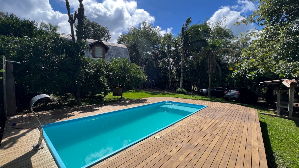 Erlebe unvergessliche Momente an diesem einzigartigen Ort, perfekt für Paare und/oder ideal für Familien. Gemütliche Cabana, in der Nähe der Stadt, aber mit Ruhe und Privatsphäre im Inneren. Ein paar km von Gramado und São Francisco de Paula entfernt. Es verfügt über einen Außenpool, einen Whirlpool, eine voll ausgestattete Küche, ein Doppelzimmer mit einem schönen Blick auf das Tal, ein zusätzliches Zimmer mit zwei Einzelbetten. Großer Innenhof mit einigen fügsamen Tieren. Genieße tolle Tage mit den Leuten, die du magst.