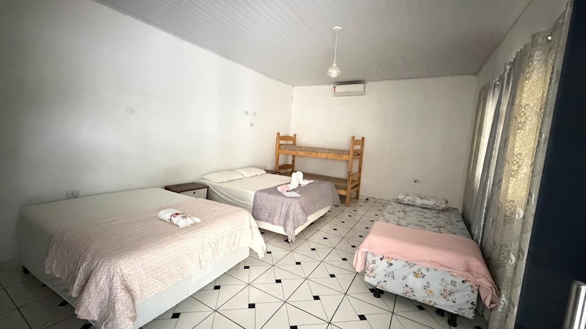 Fique à vontade com conforto neste lugar espaçoso. 1 - Suite com uma cama box de Casal 1 - Suíte com 2 camas de casal + 1 cama box com cama auxiliar + 1 Beliche - Fornecemos toalhas de banho e lençóis mediante solicitação