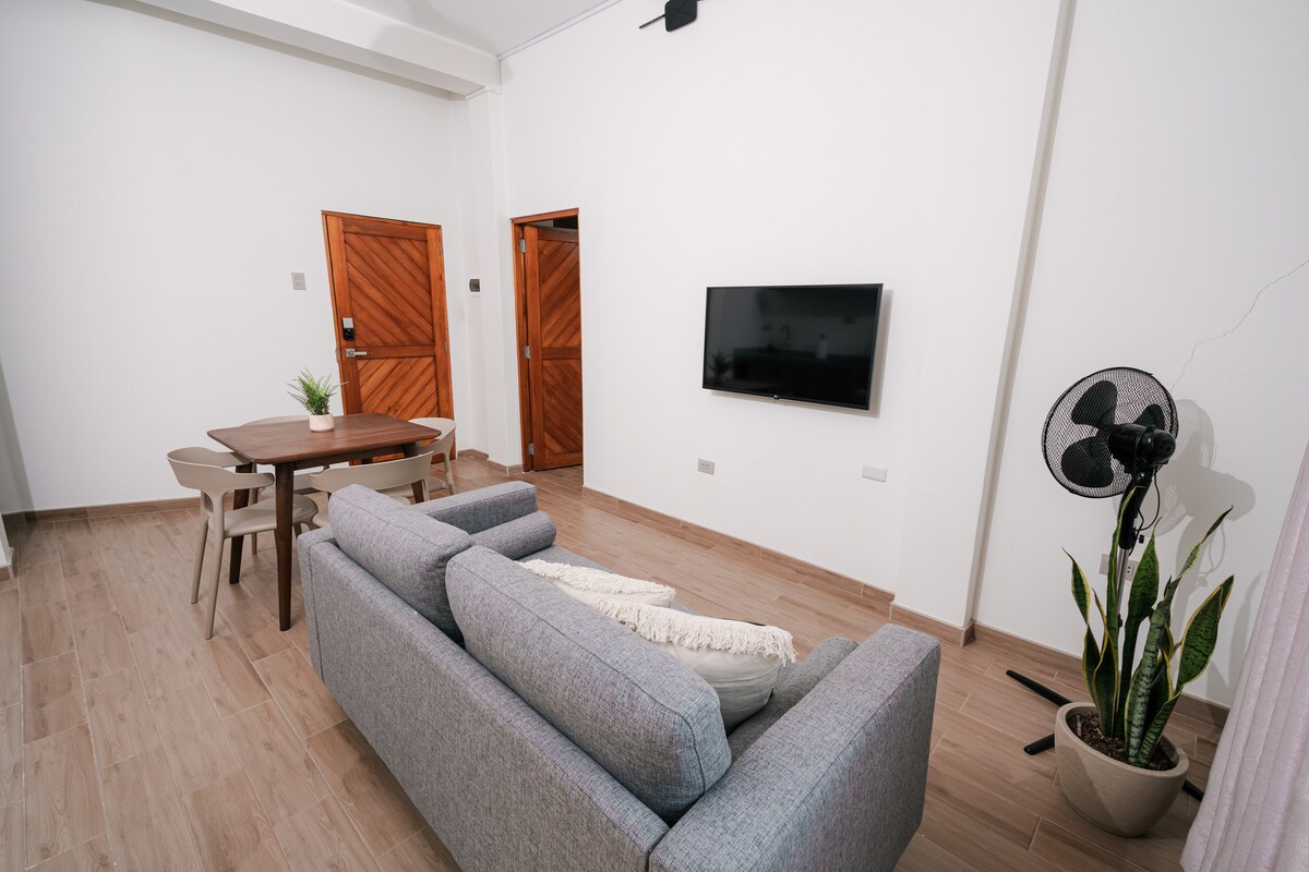 NEUE Wohnung im Zentrum der Stadt, perfekt für einen komfortablen und sicheren Aufenthalt. Sie liegt nur drei Blocks von der Plaza de Armas de Tarapoto entfernt und ganz in der Nähe der besten Restaurants, Supermärkte und Apotheken. Die Wohnung verfügt über WLAN, Smart-TV, eine ausgestattete Küche, Kalt- und Warmwasser und ein Schlafzimmer mit Klimaanlage. Die Ankunft erfolgt autonom mit einem Sicherheitscode. Die Wohnung befindet sich im zweiten Stock und ist über Treppen erreichbar.