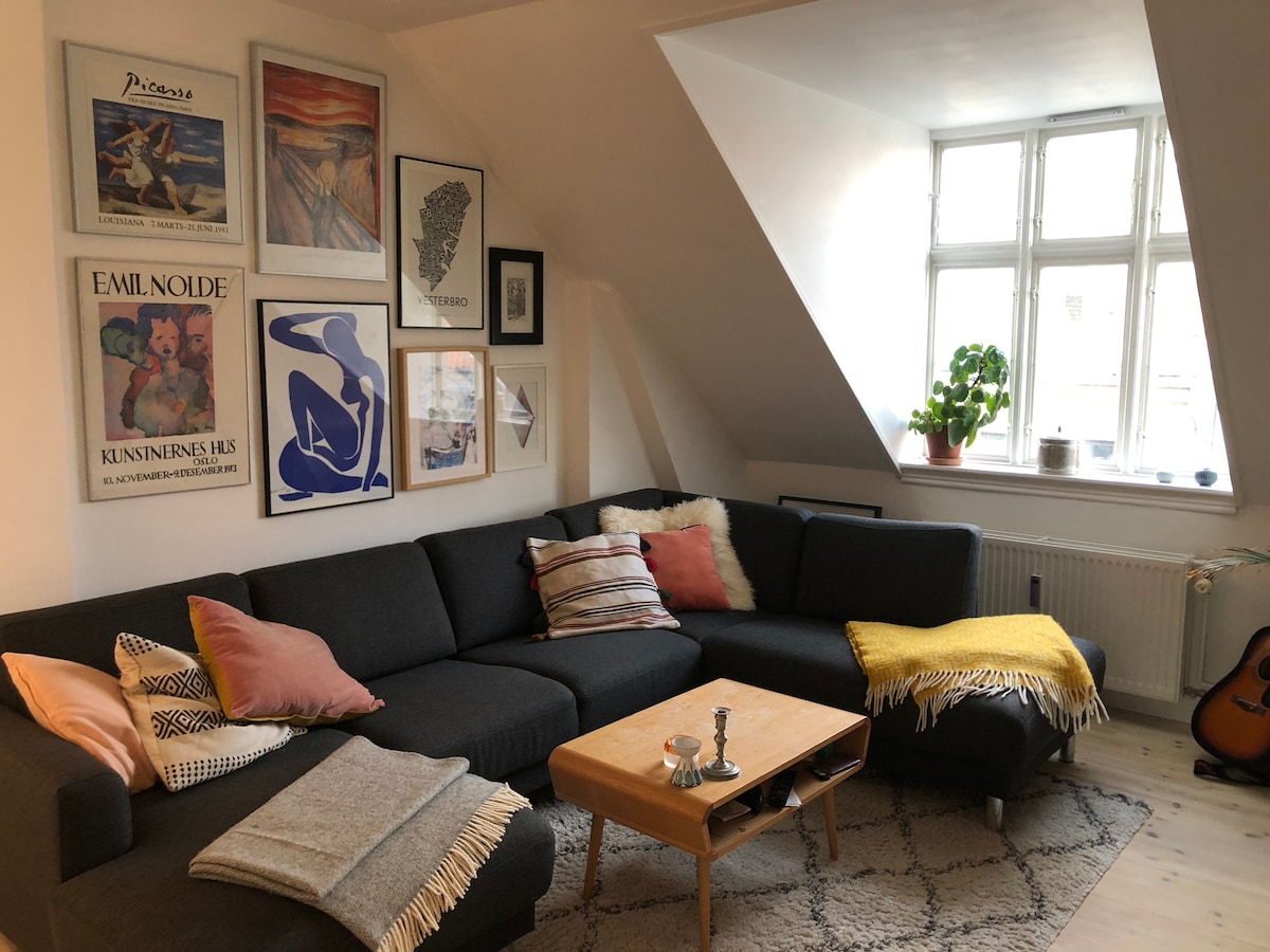 Stay in this cozy, breezy apartment with beautiful views in all directions. Unwind in the loft of a classic Copenhagen villa, complete with a lush garden, outdoor seating and fire pit, with ample free parking. Only a 5 minute walk to the metro subway line and the Royal Arena, cafes, shops and restaurants are all in the neighborhood. Private apartment with shared washer and dryer in the basement laundry room. Ideal for a couple, but able to accommodate up to 4 people via the sleeper sofa.