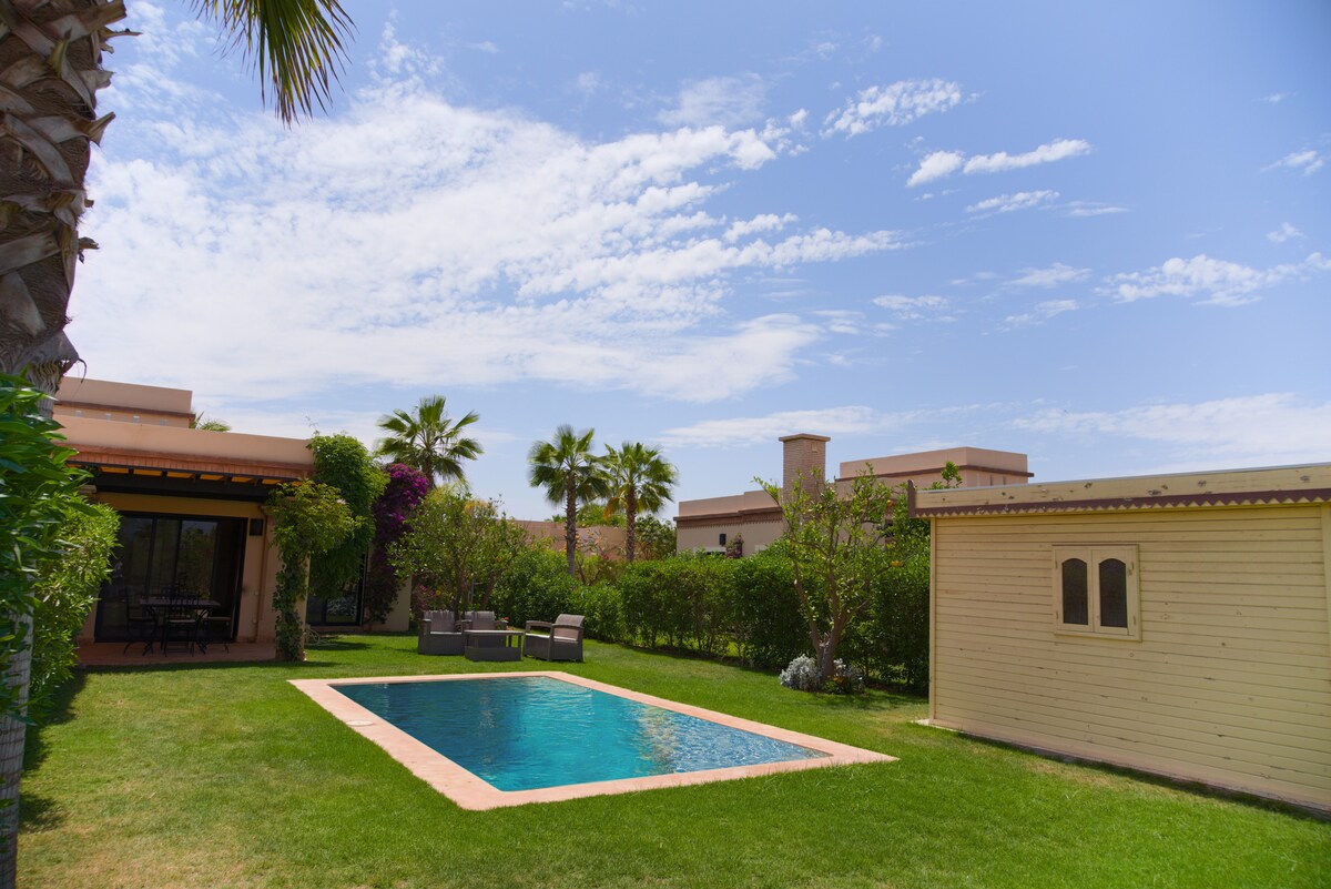 Diese ruhige Unterkunft bietet einen erholsamen Aufenthalt für die ganze Familie Privater Pool ohne Gegenüber , umgeben von einer herrlichen Grünfläche , Garten 350 m2 mit Palmen und Orangenbäumen 30 Minuten von Agadir entfernt In einem sehr ruhigen und sicheren Anwesen rund um die Uhr mit einem Golfette-Service für Ihre Reisen im Bereich Kostenloser Privatparkplatz Golfplatz , Tennis und Fitnessraum vorhanden Ein sehr großer Gemeinschaftspool auch auf dem Anwesen verfügbar