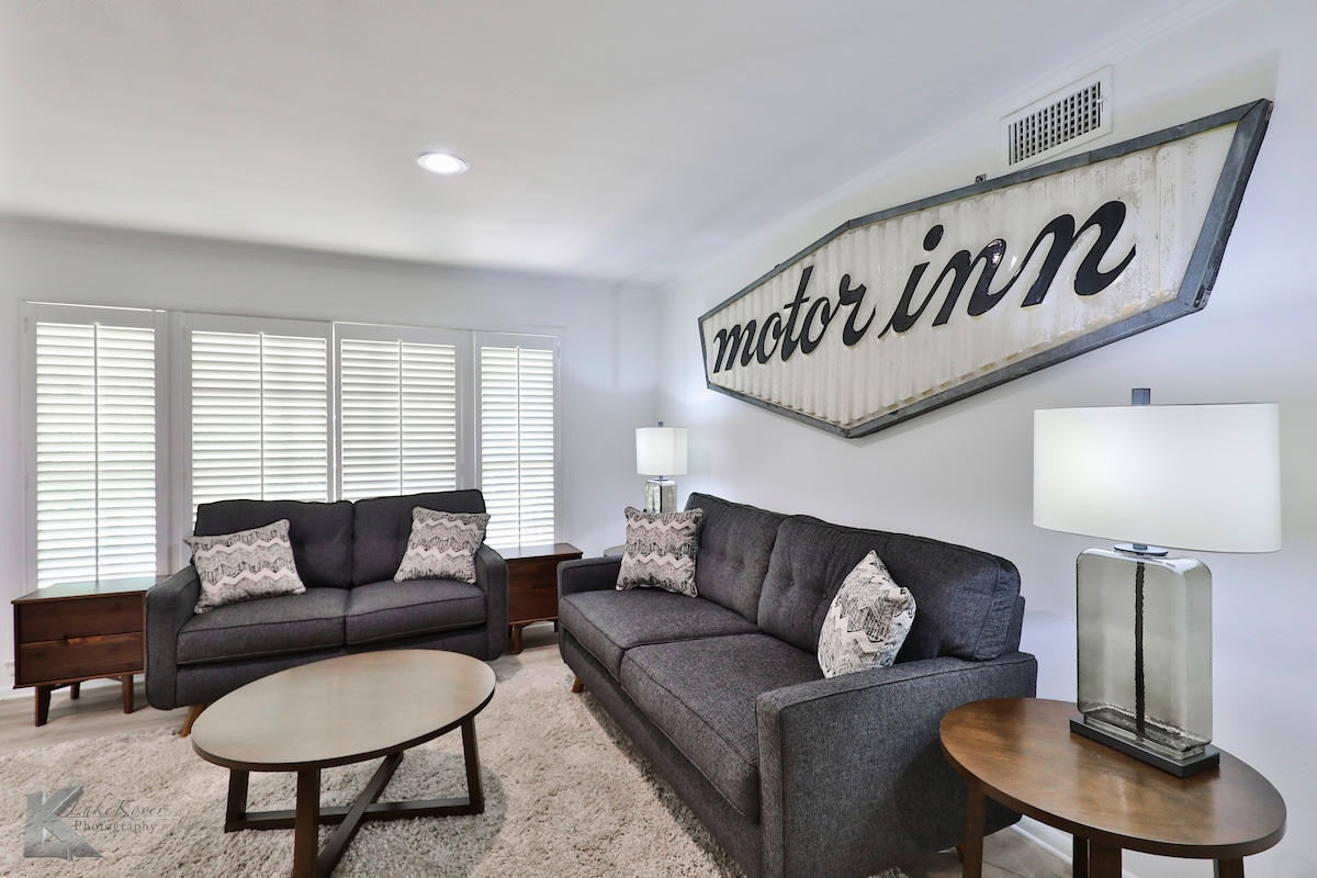 Redbud Retreat ist ein geräumiges 2BR/2BA Ziegel-Patio-Haus in einer ruhigen privaten Straße, begehbar zum Redbud Park. Mit über 1.400 Quadratfuß bietet es eine Hauptsuite mit Kingsize-Bett, ein zweites voll ausgestattetes Badezimmer, schnelles WLAN, einen 55-Zoll-Smart-TV, eine voll ausgestattete Küche, einen Ess-/Arbeitsbereich und zwei privaten Innenhof zum Entspannen. Das Hotel liegt an der Buffalo Gap Rd in der Nähe des Hendrick Medical Center South, nur eine kurze Autofahrt von ACU, Restaurants und Einkaufsmöglichkeiten entfernt. Ideal für Paare, kleine Familien oder Geschäftsreisende, die einen komfortablen, bequemen Aufenthalt in Abilene suchen.
