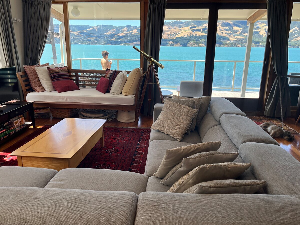 Diese charmante Villa im Herzen von Wainui hat Charakter. Mit Panoramablick auf den Akaroa Harbour und die umliegenden Hügel ist dies ein hervorragender Ort zum Entspannen und Erholen. Komm und genieße die einzigartige Umgebung zu jeder Jahreszeit. Dieses geräumige Familienhaus verfügt über 4 (+1) Schlafzimmer, eine Küche/Wohnzimmer mit einem großen Holzofen und ein weiteres Wohn-/Esszimmer mit einem offenen Kamin, die sich beide zur Veranda hin öffnen. Ich freue mich darauf, dich in meinem herrlichen Zuhause und seiner Umgebung begrüßen zu dürfen.