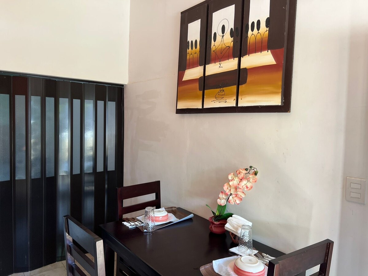 En Casa Tsisá estamos listos para recibirte y que disfrutes de una estancia agradable y tranquila. El lugar resulta excelente para descansar en familia, contamos con un jardín posterior en el que podrás disfrutar de tus alimentos al aire libre, de la vista al río Tecolutla y de los coloridos amaneceres. Para tranquilidad de nuestros huéspedes contamos con cámara de seguridad en la entrada principal al domicilio.