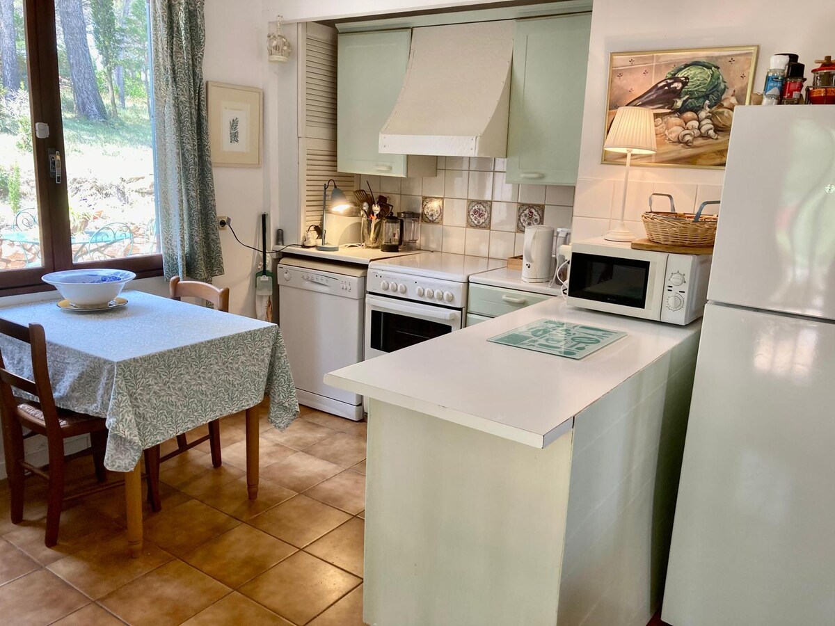 Wenn Sie Ruhe und Natur lieben, dann sind Sie hier genau richtig, denn die Straße endet direkt am Ferienhaus. Darüber hinaus schlängeln sich die Wege durch den Pinienwald und die Hügel zwischen den Kapitellen. Sie können sie zu Fuß oder mit dem Mountainbike mit oder ohne Picknick entdecken. Das Haus befindet sich in einem Weingut, das Sie besuchen können. Dieses unabhängige, klimatisierte Ferienhaus, das früher als Stall des Anwesens diente, verfügt über eine Terrasse mit Pergola und wir stellen Ihnen unseren Pool (7,2 m x 3,7 m) zur Verfügung.