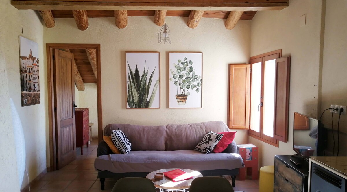 Les Roques, en Casa de las Letras (Lledó), ist eine 90 m ² große Wohnung mit außergewöhnlichem Blick auf die Häfen von Beceite. Ein traditionelles Haus, das mit Sorgfalt saniert wurde und die üblichen natürlichen Materialien respektiert. Genieße die Ruhe ohne Eile in der unvergleichlichen natürlichen Umgebung von Matarraña. 1 km von Vía Verde entfernt. Esszimmer mit Aussicht, Kamin und schrägen Holzdecken. Gemütlich. Zwei Doppelschlafzimmer. Badezimmer mit Dusche. ausgestattete Küche. Smart-TV. Klimaanlage. Kostenloses WLAN und Parkplatz.