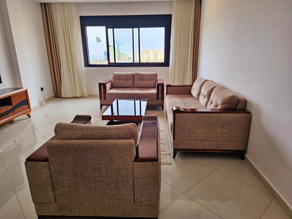 Très beau 3 pièces Neuf dans une Résidence de 2022 sécurisée 24h/24 par agents de surveillance et parking sous-terrain avec grande place. Entrée par Visiophone et Digicode, 2 ascenseurs. Vous serez au 7ème étage avec une vue imprenable sur la montagne des Lions et La Porte D'ORAN, El Bahia. Équipement parfait , de la cafetière multicapsule, jusque le fer à repasser Calor en passant par le mixeur Moulinex, il ne vous manquera rien dans ce magnifique appartement. Literie de qualité !