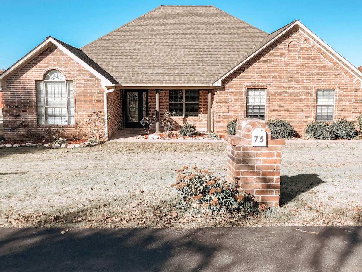 Entspanne dich mit der ganzen Familie in dieser friedlichen Unterkunft. Das Haus befindet sich auf der Rückseite von 20 Acres! Hat einen gefüllten Teich zum Angeln oder trinke Kaffee auf der Veranda und beobachte Weißwedelhirsche im Hof! Eingezäunter Hinterhof für Haustiere und viel Platz für sie zum Herumlaufen und Teich zum Schwimmen. Hat eine große Garage. 3,5 Meilen vom Messegelände, 4 Meilen von der Innenstadt von Texarkana, 2,8 Meilen von Cooper Tire entfernt. Nah genug an allem, aber entspannter und ruhiger, als du es in einer Nachbarschaft finden kannst!