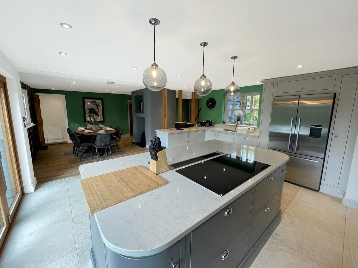 Entfliehe mit einer Gruppe von Freunden oder Familie in die wunderschöne englische Landschaft zu dieser atemberaubenden Scheune am Rande von Bishops Stortford. Mit seinen freiliegenden Eichenbalken, dem Kamin aus Holz und dem Whirlpool ist dies ein besonderer Ort, um sich bequem zu entspannen und zu erholen, eine perfekte Flucht aus der Stadt. Wir bemühen uns, einen luxuriösen Aufenthalt in diesem Umbau mit 3 Schlafzimmern zu bieten, der Platz für bis zu 6 Personen bietet. Alle drei Schlafzimmer haben ein eigenes Bad und wir verwenden Bettwäsche, Shampoos und Conditioner von B-Corp.