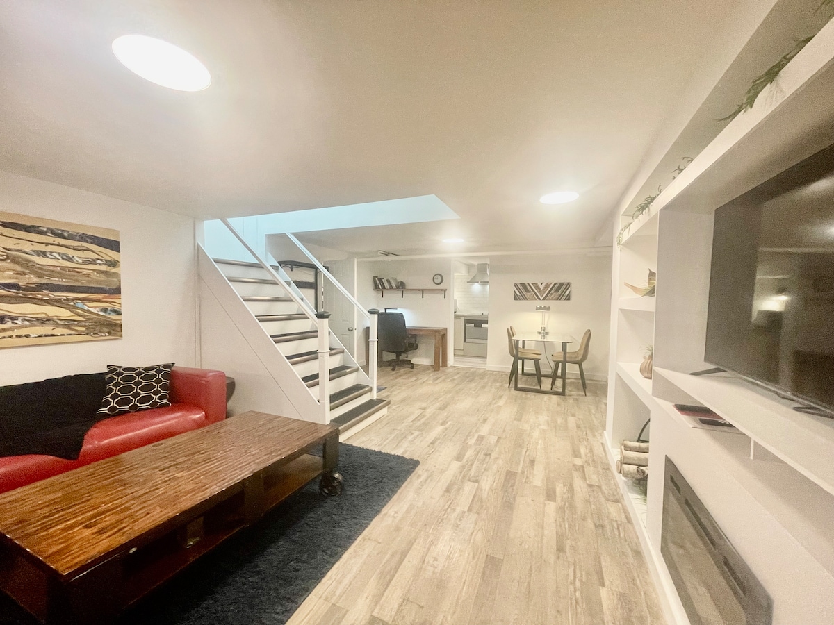 Willkommen in unserer luxuriösen Gartensuite mit einem privaten Whirlpool im Freien, perfekt zum Entspannen! Sie befindet sich in der Innenstadt von Kitchener, nur wenige Schritte von Cafés, Bäckereien, Restaurants und dem Wochenendbauernmarkt entfernt. Diese Suite mit 2 Betten/2 Bädern verfügt über eine voll ausgestattete Küche, eine Waschmaschine/einen Trockner und einen atemberaubenden neuen Bodenbelag. Mit schnellem Zugang zu Autobahnen, Transitlinien zu Colleges und Universitäten und dem Iron Horse Trail ist es der ideale Ort für Familien, Arbeiter und Studenten. Parkplätze sind ebenfalls inbegriffen!