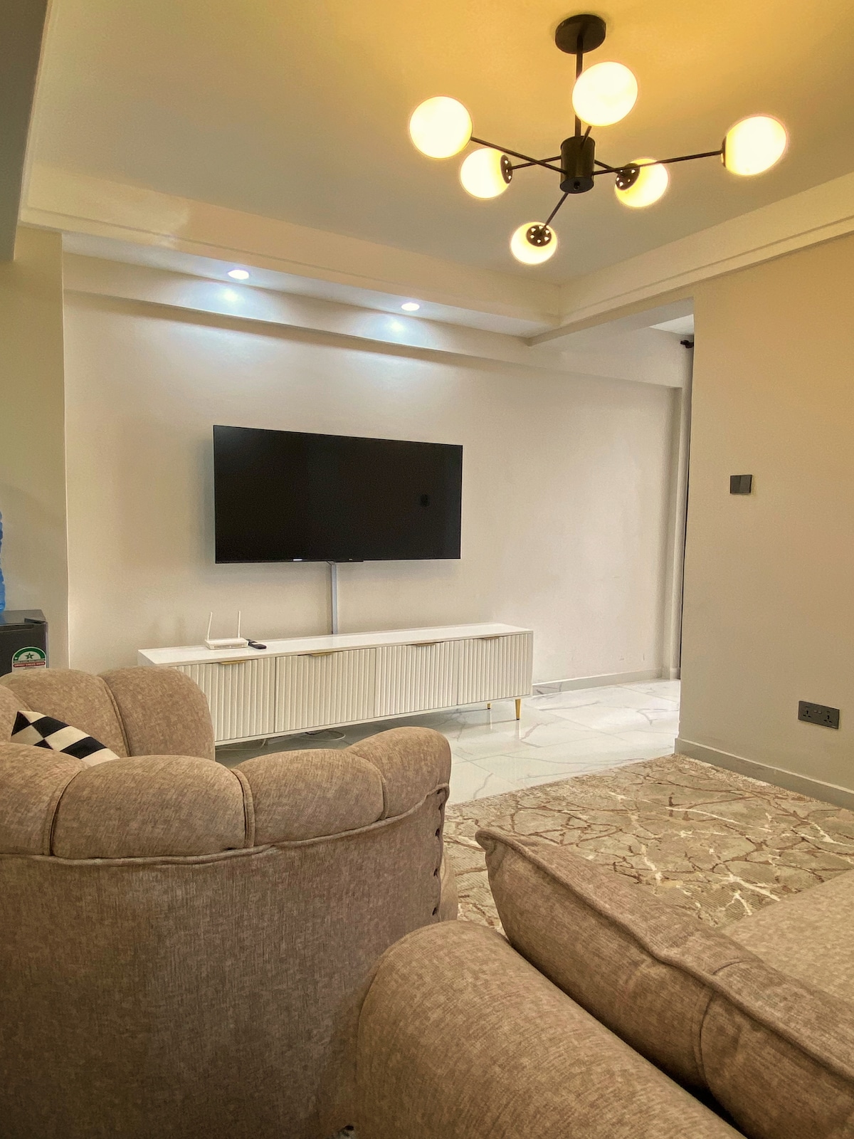 Beobachte den Sonnenuntergang über der Skyline von Nairobi von deinem eigenen, privaten Balkon aus. Unsere erstklassige Wohnung verfügt über ein Kingsize-Bett, Highspeed-Internetzugang und eine Vielzahl von Unterhaltungsmöglichkeiten von Netflix, Amazon Prime, Premium YouTube und Kabel. Genieße Live-Fußball, Filme und Musik auf unserem 55-Zoll-Bildschirm. Die Lage ist ein Party- und kulinarischer Hotspot mit einer Reihe von Restaurants, Supermärkten, Cafés und Friseurläden, Salon- und Unterhaltungshotspots, ganz zu schweigen von den nahegelegenen Einkaufszentren, die nur eine Minute entfernt sind.