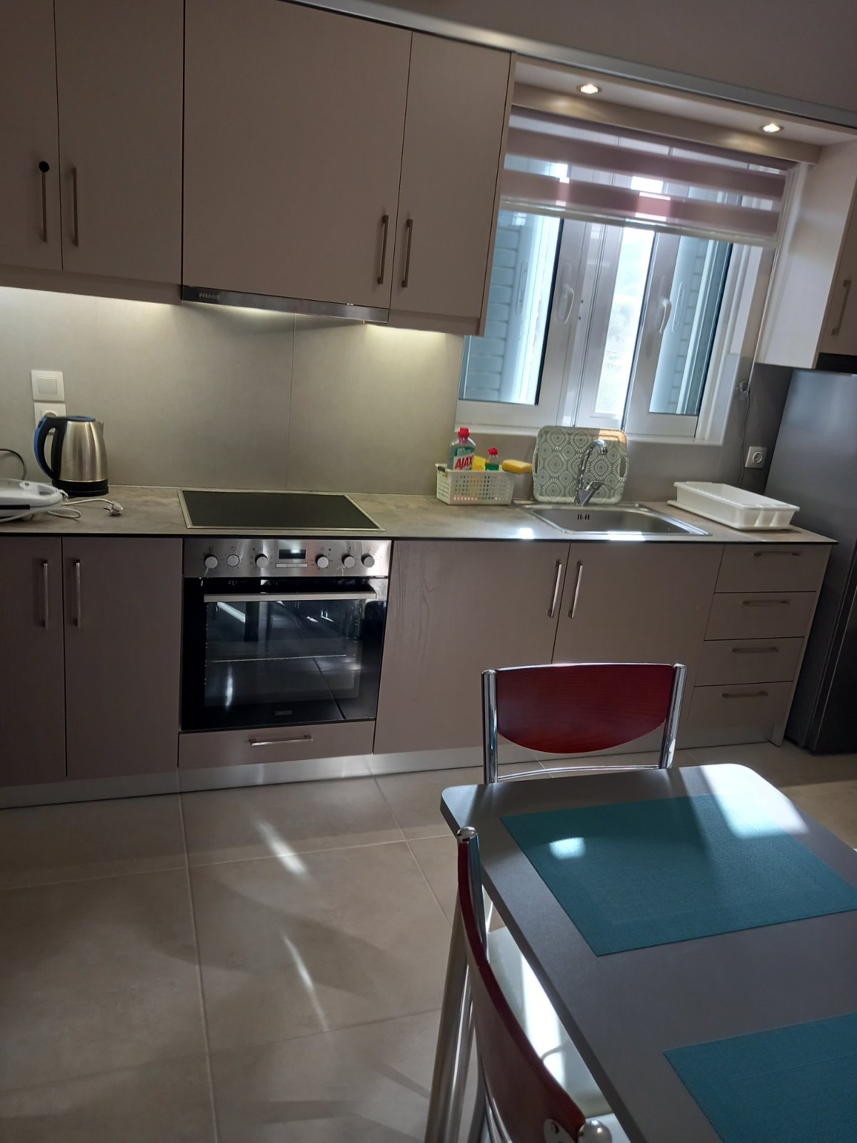 Eine neu gebaute Wohnung mit komfortablen Räumen, einem schönen Innenhof mit Blumen und einer tollen Aussicht. Sie bietet einen Blick auf den Hafen von Pylos, die Lagune von Gialova, den schönen Strand von Voidokilia und den Komplex Costa Navarino. Ein funktionell integrierter Raum, sehr sorgfältig, ideal für 3 Personen. Voll ausgestattete Küche, Esszimmer, Schlafzimmer und komfortables modernes Badezimmer.