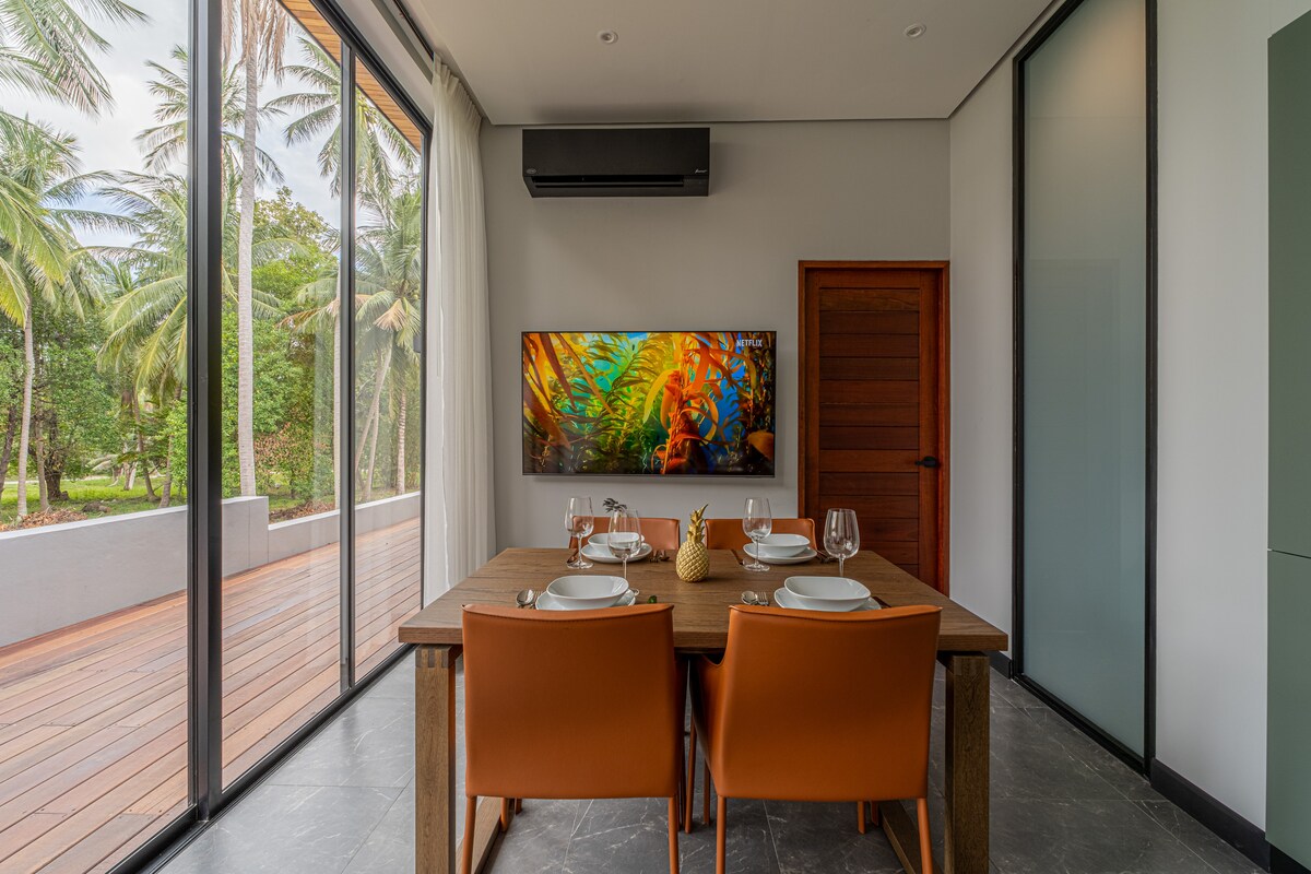 MAYARA ist ein kleiner Komplex von Villen mit einem Schlafzimmer, alle mit privaten Infinity-Pools und einem atemberaubenden Blick auf die Nachbarinsel Koh Tao. Alle Villen sind mit modernem Komfort ausgestattet, der von der Umgebung inspiriert ist. Jede klimatisierte Villa verfügt über eine voll ausgestattete Küche, einen Deckenventilator, Verdunkelungsvorhänge und einen Smart-Flachbildfernseher. Ganz zu schweigen von deinem eigenen privaten Salzwasserpool! Der nächste Strand Haad Thian West ist 5 Gehminuten entfernt.