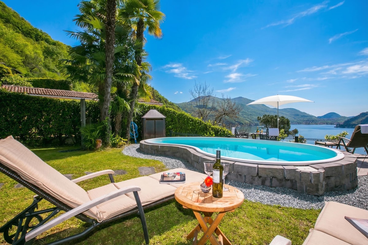 Fabelhafte Villa am See, neu gebaut mit Whirlpool, riesiger Terrasse und spektakulärem Seeblick! Sonniges Grundstück in Südrichtung, 170 m2 Terrasse , Privatparkplatz, Klimaanlage und Whirlpool das ganze Jahr über. Komm und genieße Sans Souci 1, nur wenige Meter vom Luganersee entfernt. Du wohnst etwa 1,5 Autostunden von Mailand und 1 Stunde vom Herzen der Schweizer Alpen entfernt. Im Sans Souci 1 kannst du wirklich die Aussicht genießen, entspannen und die Schweiz in all ihrer Schönheit erleben!
