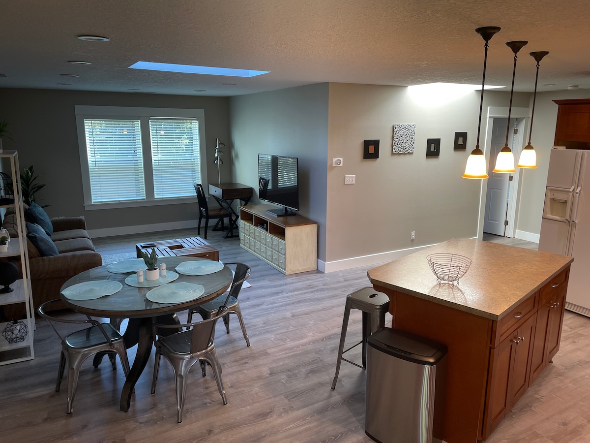 Fühl dich in dieser gemütlichen, freistehenden Einliegerwohnung wie zu Hause und erkunde Beavertons aufstrebende Innenstadtszene oder steige in den Max für eine kurze Reise nach Portland. Mit einem Walking Score von 81 kannst du jederzeit zu Fuß zu einer Vielzahl von Restaurants und Parks gehen und samstags zu einem wunderbaren Bauernmarkt. Diese Unterkunft verfügt über einen separaten Eingang, eine Terrasse, eine voll ausgestattete Küche, eine Waschmaschine und einen Trockner, einen Essbereich, ein Queensize-Bett und einen großen Fernseher. Die Eigentümer sind vor Ort und möchten sicherstellen, dass du die bestmögliche Erfahrung machst.