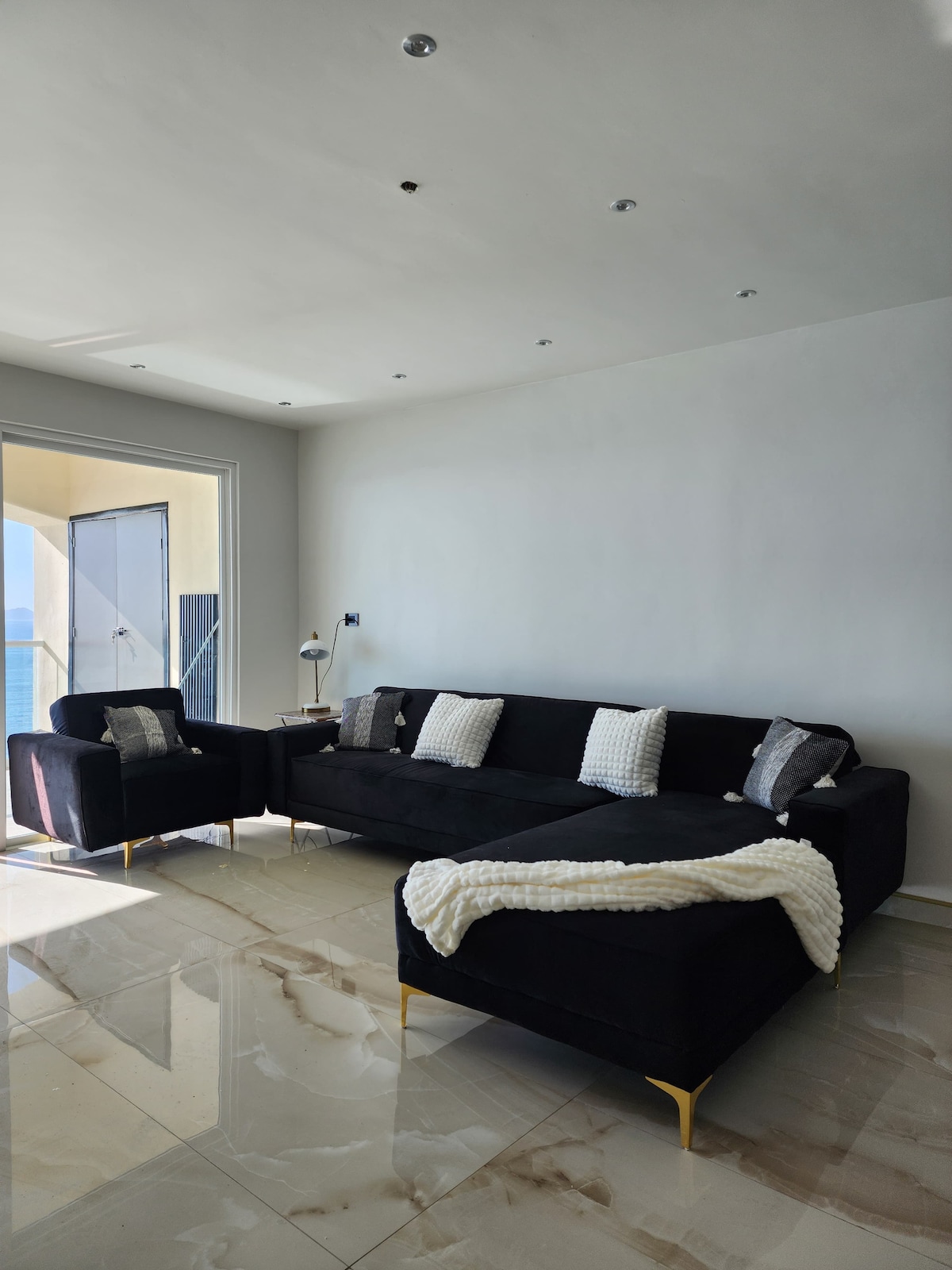 Private luxuriöse Wohnanlage am Meer mit 3 Pools, 8 Whirlpools, Fitnessraum und Spa. Die Wohnung verfügt über 2 Schlafzimmer, 1 Badewanne, 2 Badezimmer, Wohnzimmer, voll ausgestattete Küche, Esszimmer, Waschmaschine und Trockner. Smart-TVs in jedem Zimmer und ein eigener Arbeitsplatz für Homeoffice. Der Balkon am Meer mit vollem 180 Blick von der 12. Etage aus verfügt über einen Bluetooth-Lautsprecher, ein Lounge-Sofa, einen Grill und eine Bar für den perfekten Happy-Hour-Sonnenuntergang. Tragbare Eistruhe, Stühle & Handtücher für Strandbesucher sind inbegriffen. Entspanne dich einfach!!