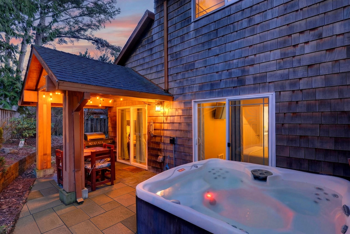 Unsere Surf-Stil-Hütte mag klein sein, aber die großen Fenster mit Blick auf die Bucht, das Meer und die Küstenwälder lassen viel Licht in den Raum strömen. Nur einen kurzen Spaziergang vom Strand, von den Geschäften und in der Nähe einiger der besten Surfspots in Nord-Oregon entfernt. Genieße neblige Morgen im Whirlpool, Abenteuer während des Tages und verbringe Sonnenuntergänge an der Feuerstelle oder auf unserer großen Terrasse. Unser Vorgarten hat auch einen Wildpfad, also bring ein paar Äpfel mit – wahrscheinlich siehst du ein oder zwei Rehe : ) @surflineloft STVR#851-24-000045
