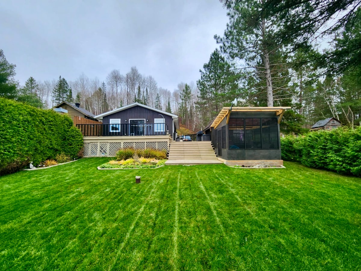 Schönes gemütliches Ferienhaus mit vielen Fenstern, das sich im abgelegenen nördlichen Ontario befindet. Das Ferienhaus ist von alten Bäumen umgeben, die viel Privatsphäre für deinen Morgenkaffee auf der Terrasse bieten. Ruhige Lage und obwohl es 6 Erwachsene beherbergen kann, ist es ideal für 2 Paare oder eine kleine Familie.