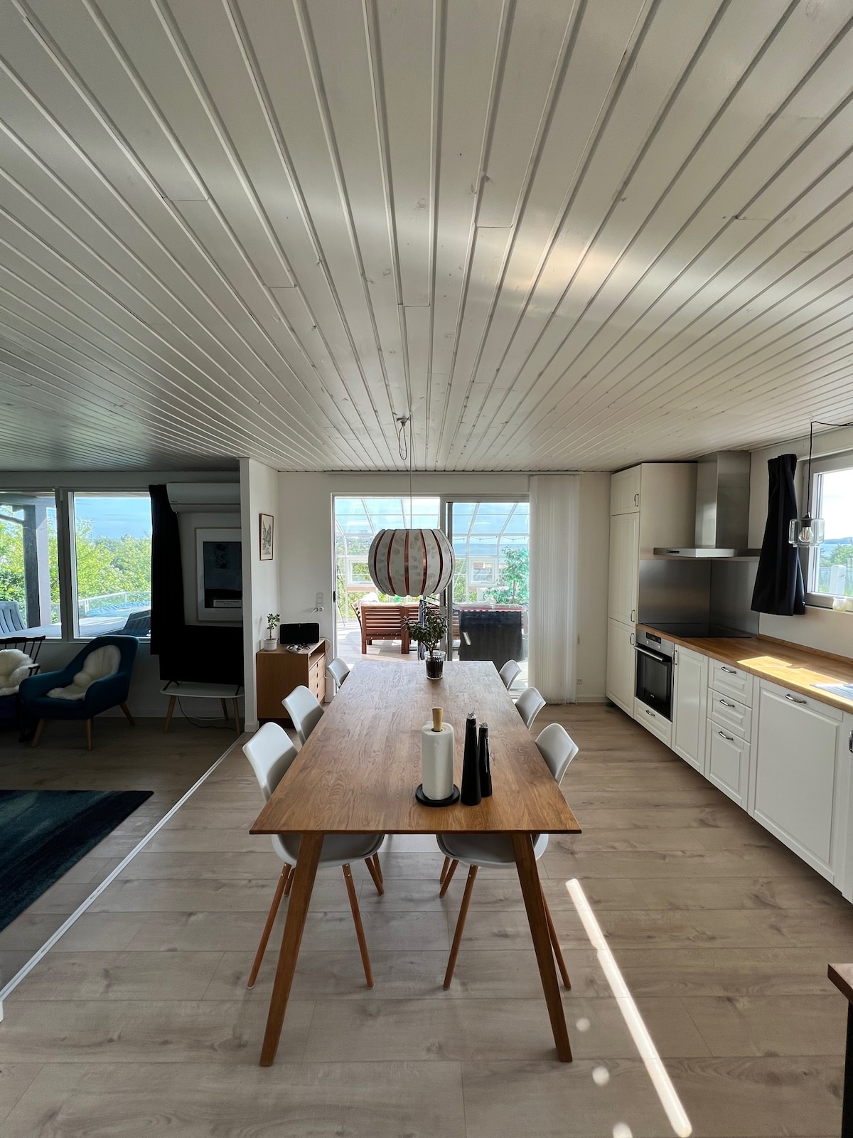 Willkommen in unserem schönen Haus, das sich auf dem Land in einem kleinen Dorf in der Nähe von Ebeltoft befindet. Wir haben das Haus für die letzten 4 Jahre renoviert, sodass das Interieur modern mit Fußbodenheizung, Küche, Badezimmer, 2 Schlafzimmer, Eingang und Wohnzimmer mit Holzofen und gefliester Decke aussieht. 1 Loft mit 2 Schlafplätzen und 1 Loft mit Schreibtisch. Der Garten ist eingezäunt und es gibt viel Platz zum Spielen und Kochen im Freien auf dem Grill oder der Feuerstelle. Auf der anderen Straßenseite befindet sich die Orangerie, der Obstgarten und der Wald. Viele schöne Natur in der Umgebung.