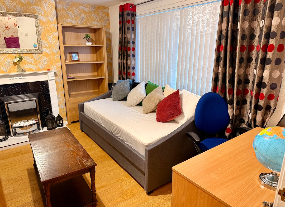 Geschmackvoll eingerichtete Wohnung im obersten Stockwerk eines viktorianischen Reihenhauses im grünen Vorort von East Belfast. Sie besteht aus einem Schlafzimmer mit einem Doppelbett, einem offenen Küchen-/Wohnbereich mit einem Doppelschlafsofa und einem Badezimmer. Die Gäste haben Zugang zum Innenhof und Garten und Parkplätze stehen zur Verfügung. Nur 10 Minuten mit dem Bus ins Stadtzentrum (nächste Haltestelle 2 Gehminuten entfernt) und eine 5-minütige Fahrt vom City Airport entfernt. Kurzer Spaziergang zu vielen ausgezeichneten Restaurants, Cafés und Bars. Bequem zum Stormont Estate und zum Radweg.