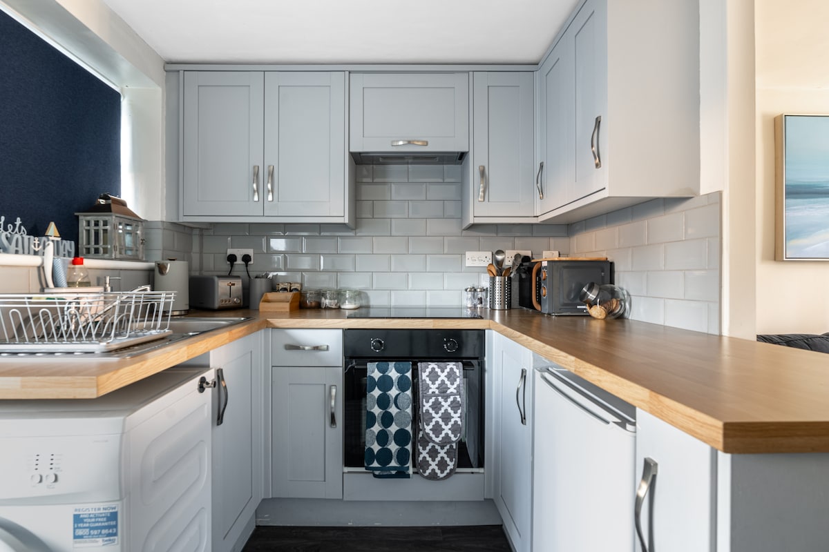 Grad II Listed Eighteenth Century Boat Builders Cottage. Mit einem Doppelzimmer, einem Einzelzimmer, Duschbad, Küchenbereich und einer kleinen gemütlichen Lounge. Dort befindet sich ein kleiner privater Hof mit Bank. Parkplatz vor Cottage. Ein wenig klein für eine Entdeckung, da du einen Dosenöffner benötigst, um dein Fahrzeug zu verlassen. Handtücher und Bettwäsche sind vorhanden. Das Cottage liegt in einer geschäftigen Stadt. Obwohl die Cottages in einer Seitenstraße liegt, die zum Bootshof und zum Wasser führt.