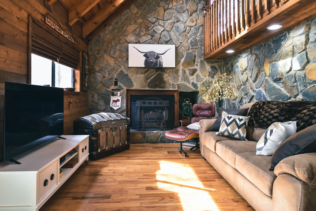 😍 <b>Sourwood Cabin at Kindle 🔥 Ridge</b> ⛰️ Genieße die Natur UND den Luxus auf 40 privaten Hektar mit Blick auf die North Georgia Mountains. • Blick auf die Berge • Badewanne • Außenduschen • Whirlpool • Innenduschen • Schaukel mit Queensize-Doppelbett • Projektor mit 120-Zoll-Bildschirm • Gaskamin • Gasgrill • Küche • Kingsize-Doppelbett • WLAN Füge unser Inserat zu deiner <b>Wunschliste</b> hinzu, indem du ❤️ in der oberen rechten Ecke klickst.