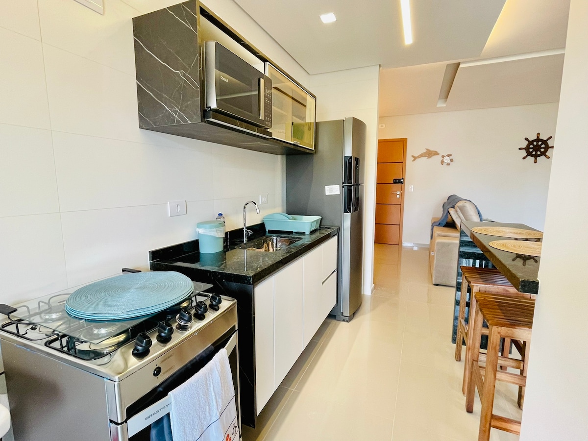Wohnung mit privilegierter Aussicht! Die Wohnzimmerwand ist ein großes Fenster zum Meer!! Platz für bis zu vier Personen. Amerikanische Küche und Balkon. Ein Reinigungsservice kann angefordert werden (hinterlasse die Schlüssel an der Rezeption). Direkter Spaziergang zum Strand. Überdachte Garage, Aufzüge, Torhäuser am Eingang und am Strand mit Überwachung. Internet. All das lausche dem Brechen der Wellen! Bettwäsche und Handtücher gegen Gebühr und 72 Stunden im Voraus.