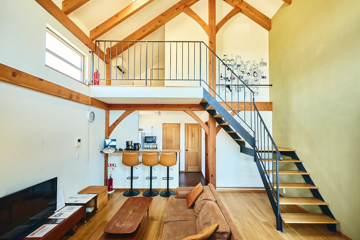 [Shida House Gebäude B] 2021 Neubau 80 ㎡/2 ~ 6 Personen/Wohn-Esszimmer, teilweise mit Deckenventilator/2 Schlafzimmer (beide mit Loft)/3 kostenlose Parkplätze/Außendusche/Direkter Zugang vom Eingang zum Badezimmer und Surfbrett-/Wet-Lagerraum/Großer Garten mit Naturrasen und überdachter Holzterrasse mit direktem Zugang zum Wohnzimmer/BBQ-Grill (wir stellen auch Holzkohle und Zungen bereit)/IPv6 WIFI/Waschmaschine und Trockner/automatisches Geschirrspülen (Hinweis: Zustellbetten werden durch Selbstbedienung mit der mitgelieferten Bettwäsche ausgestattet.) Es ist ein Haus in einer natürlichen Umgebung mit guter Aussicht, das nur 5 Minuten zu Fuß vom Surfspot Shitashita Beach, dem Austragungsort der Olympischen Spiele, entfernt ist und von der Meerseite des Lofts im 2. Stock aus den Hafen von Kujukuri überblickt. Auf der 16 m² großen, überdachten Holzterrasse, die direkt an das Wohnzimmer angrenzt und nach Süden ausgerichtet ist, können Sie einen Grillabend mit Blick auf den 28 m² großen Garten mit Naturrasen und Kräutergarten genießen. Das 31 ㎡ große Wohnzimmer ist teilweise offen und vermittelt mit seinen Deckenventilatoren und der Holzdecke ein Gefühl von Urlaub. Genießen Sie nachts den klaren Sternenhimmel von Kujukuri mit Freunden und der Familie.
