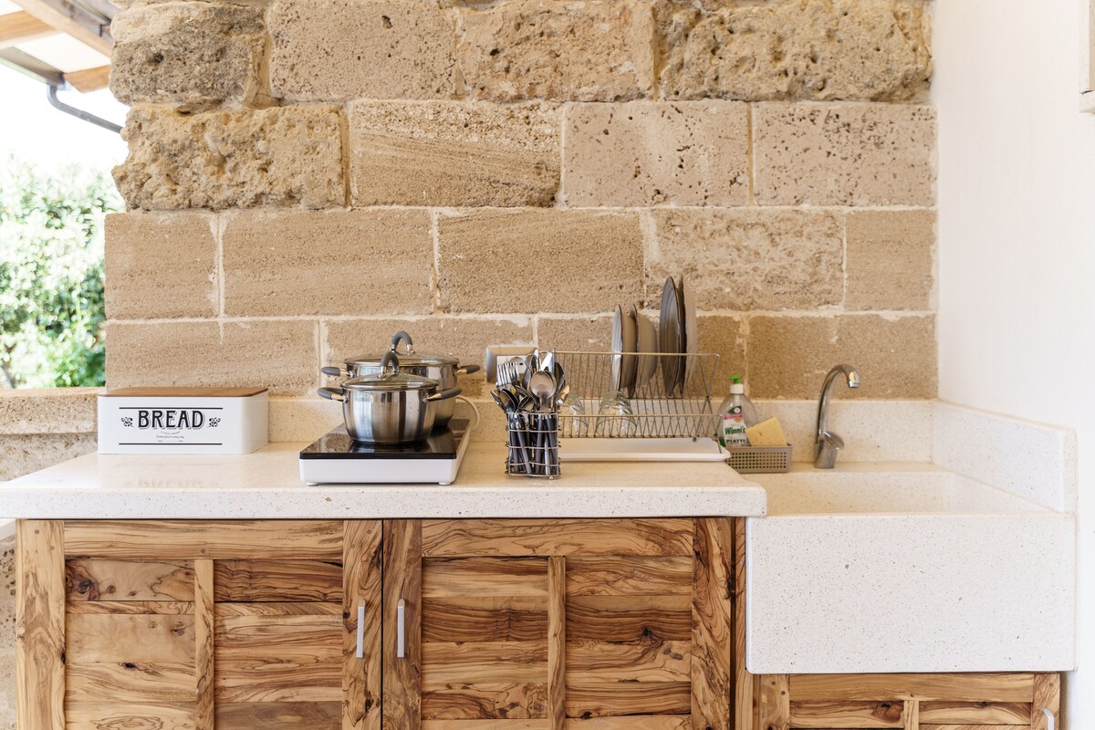 Die Villa liegt an der Strandpromenade von Torre Suda, nur wenige Meter vom Meer entfernt, und erstreckt sich über 1000 Quadratmeter. Die Einrichtung ist modern mit einer familiären und komfortablen Atmosphäre. Umgeben von einer Grünfläche mit mediterraner Vegetation und Entspannungsecke. Der Pool ist exklusiv, mit maximaler Privatsphäre. Er ist das ganze Jahr über geöffnet und kann auf Anfrage mit bis zu 26° beheiztem Wasser gegen einen Aufpreis von 350,00 Euro genutzt werden.