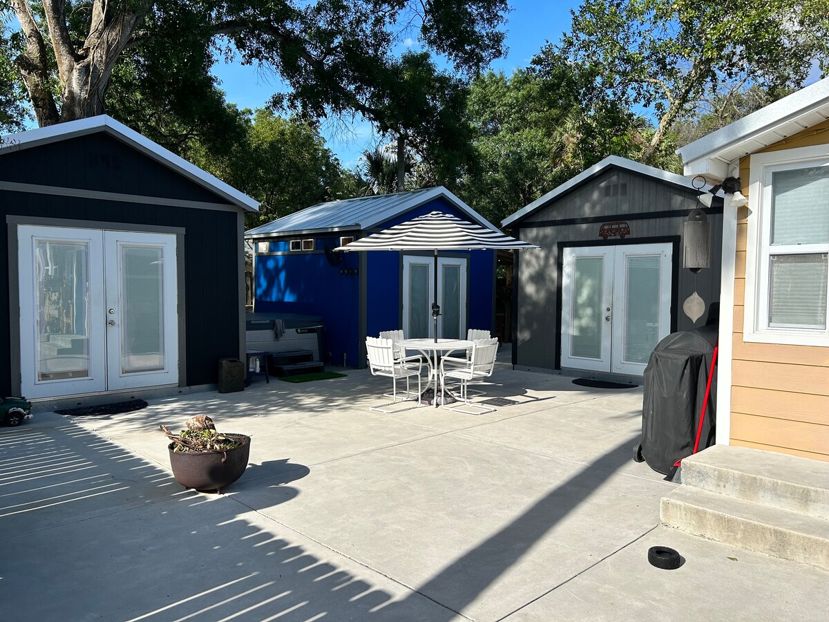 Modernes, minimalistisches, winziges Haus mit künstlerischem Dekor. Diese Unterkunft verfügt über alte Eichen, viele Fenster und natürliches Licht. Es gibt einen Essbereich im Freien, einen Whirlpool, Liegestühle, eine Feuerstelle, einen Fischteich und einen weitläufigen Garten für Naturliebhaber. Einkaufsmöglichkeiten (10 Min.), USF (15 Min.), Busch Gardens/Adventure Island (20 Min.), Clearwater Beach (45 Min.), Raymond James Stadium (30 Min.), TPA (35 Min.), Innenstadt von Tampa (30 Min.), Ybor (30 Min.), Disney (1,5 Std.). Bitte ruf uns an, wenn du Fragen hast.