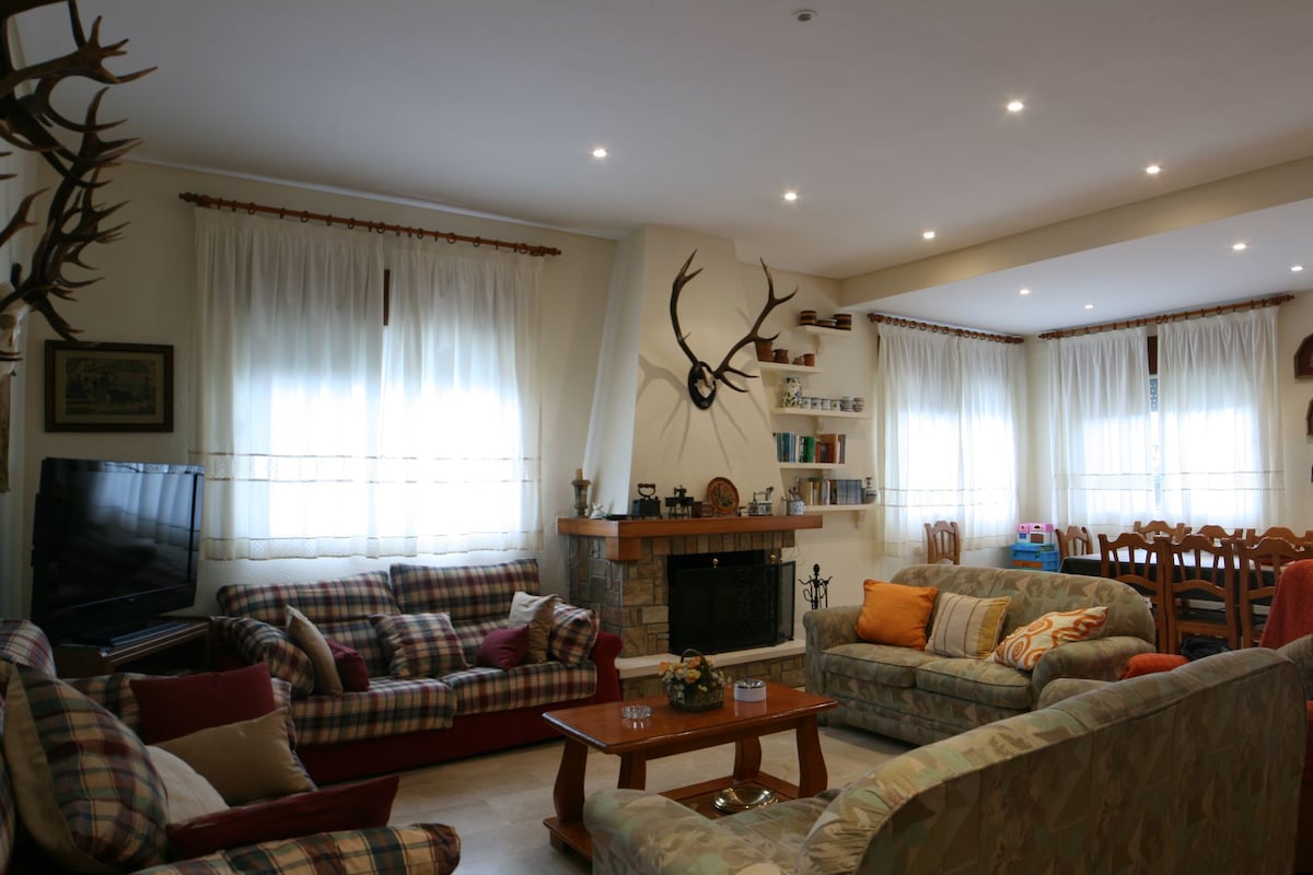 - Ein freistehendes Haus mit 8 Schlafzimmern, 4 Badezimmern, einem privaten Pool, einem großen Garten, einem Grill, Wohnzimmern, 2 Kaminen, Tischtennis, Tischfußball, Billard... Klimaanlage im ganzen Haus. - Auf der Außenseite kannst du nur die Soundgeräte des Hauses verwenden. Partys sind nicht gestattet. Lärm ist nach 22:00 Uhr draußen nicht mehr gestattet.
